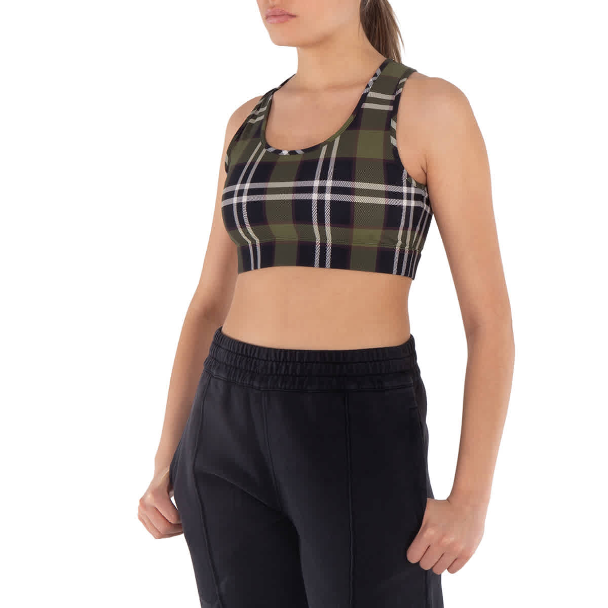 Женские топы Burberry. Категория: одежда для активного отдыха и отдыха. Цвет: темно-оливковый. Укороченный топ Burberry Immy в винтажную клетку. Узор в винтажную клетку оливково-зеленого цвета, круглая горловина, без подкладки, эластичная резинка снизу и укороченный крой. Состав: 59% полиамид, 41% эластан. Сделано в Португалии.