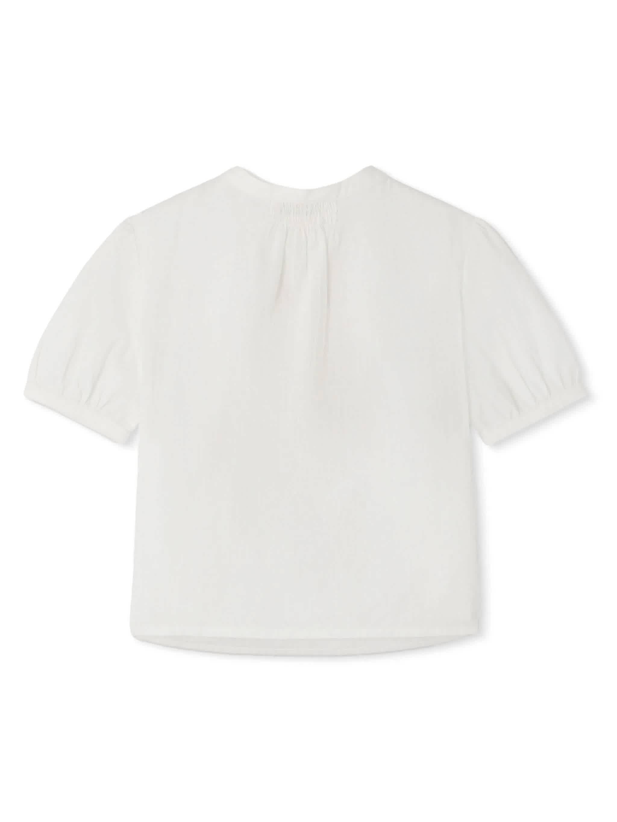 Bonpoint Блузка из хлопка с вышитым логотипом для девочек, Blanc Lait