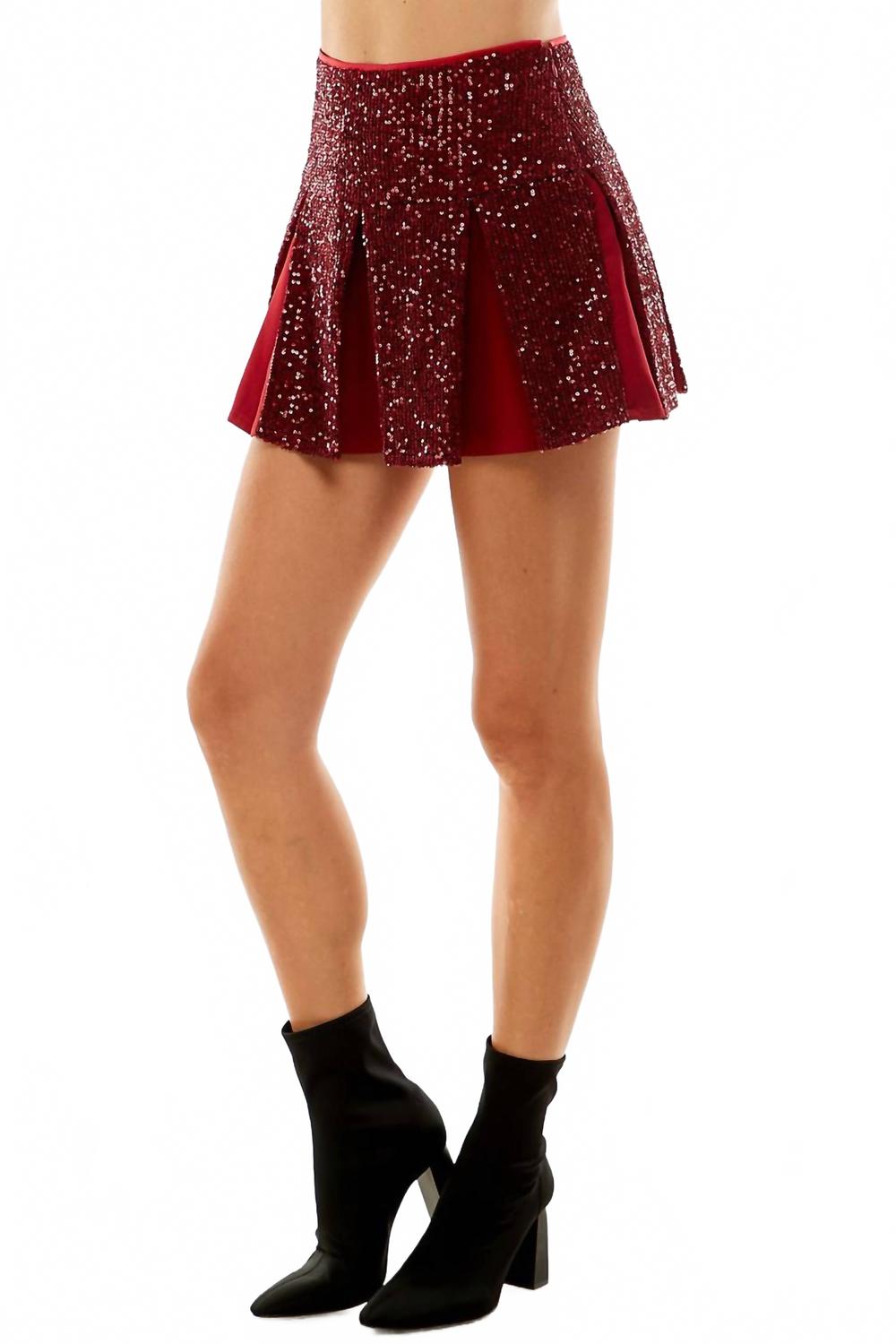Вступите в сезон вечеринок с мини-юбкой Morgan Sequin от TCEC - великолепным выбором для торжеств и игр. Эта бордовая юбка украшена пайетками и имеет стильный плиссированный дизайн. Застежка: молния. Уход: сухая чистка, сушить в разложенном виде на горизонтальной поверхности.
