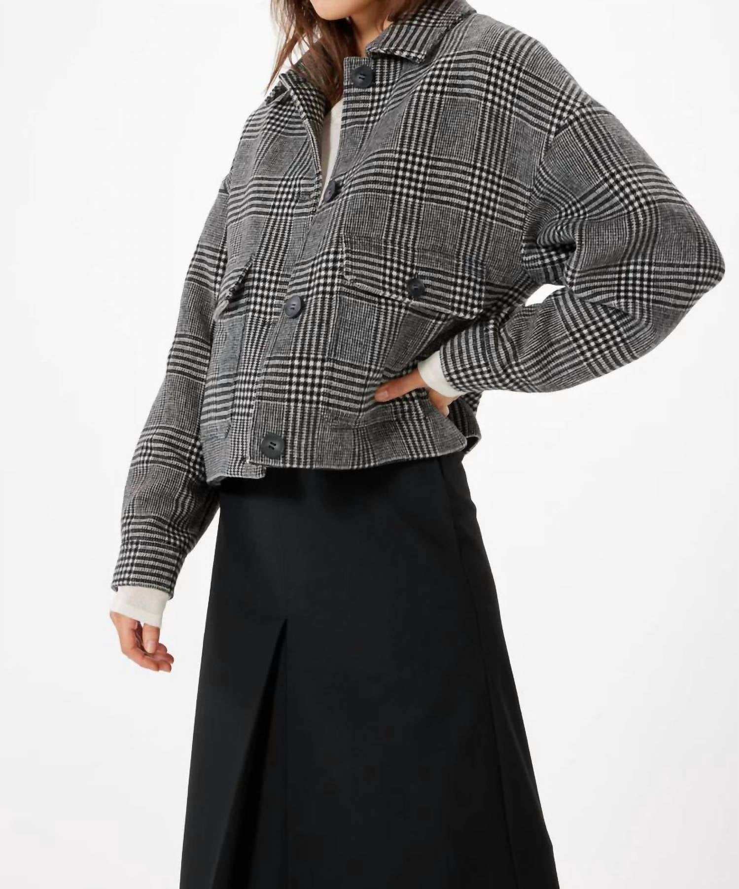 Куртка Watson в черно-белую клетку. Посадка и мерки. Размеры указаны для модели размера Small. Рост модели 175 см, на ней размер Small. Соответствует размеру. Состав + Уход: 30% шерсть, 70% полиэстер. Ручная стирка в холодной воде. Сушить на открытом воздухе.