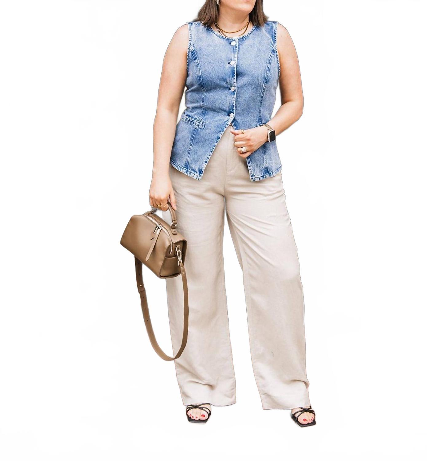 Откройте для себя льняные брюки WithBlack - незаменимую вещь для теплой погоды в стильном оттенке хаки. Эти брюки свободного кроя с широкими штанинами и эластичным поясом сзади обеспечивают комфорт. Изготовленные из 55% льна и 45% вискозы, они легкие и дышащие. Застежка - молния и крючок, а также боковые карманы обеспечивают практичность.