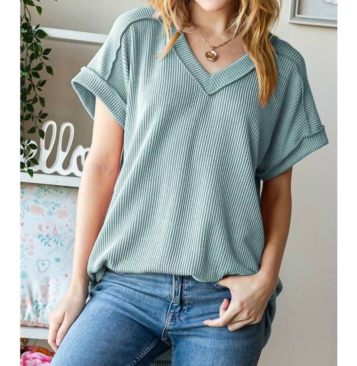 Этот женский топ с короткими рукавами и V-образным вырезом идеально подходит для повседневной носки. Однотонный крой позволяет создать универсальный образ для любого случая. Уход за изделием прост: машинная стирка и сушка в разложенном виде на горизонтальной поверхности.
