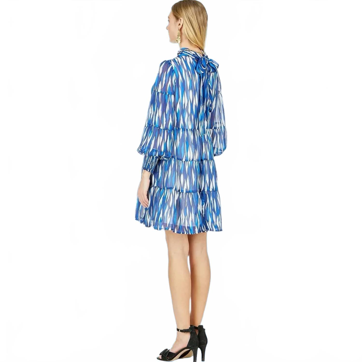 Представляем платье Joy Joy с завязкой на спине - восхитительное дополнение к вашему летнему гардеробу. Это мини-платье А-силуэта с длинными рукавами и игривым зеленым узором на синей основе дополнено оригинальной завязкой на спине. Его жизнерадостный дизайн излучает очарование и веселье.