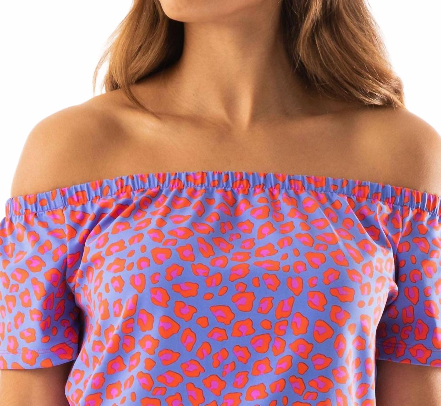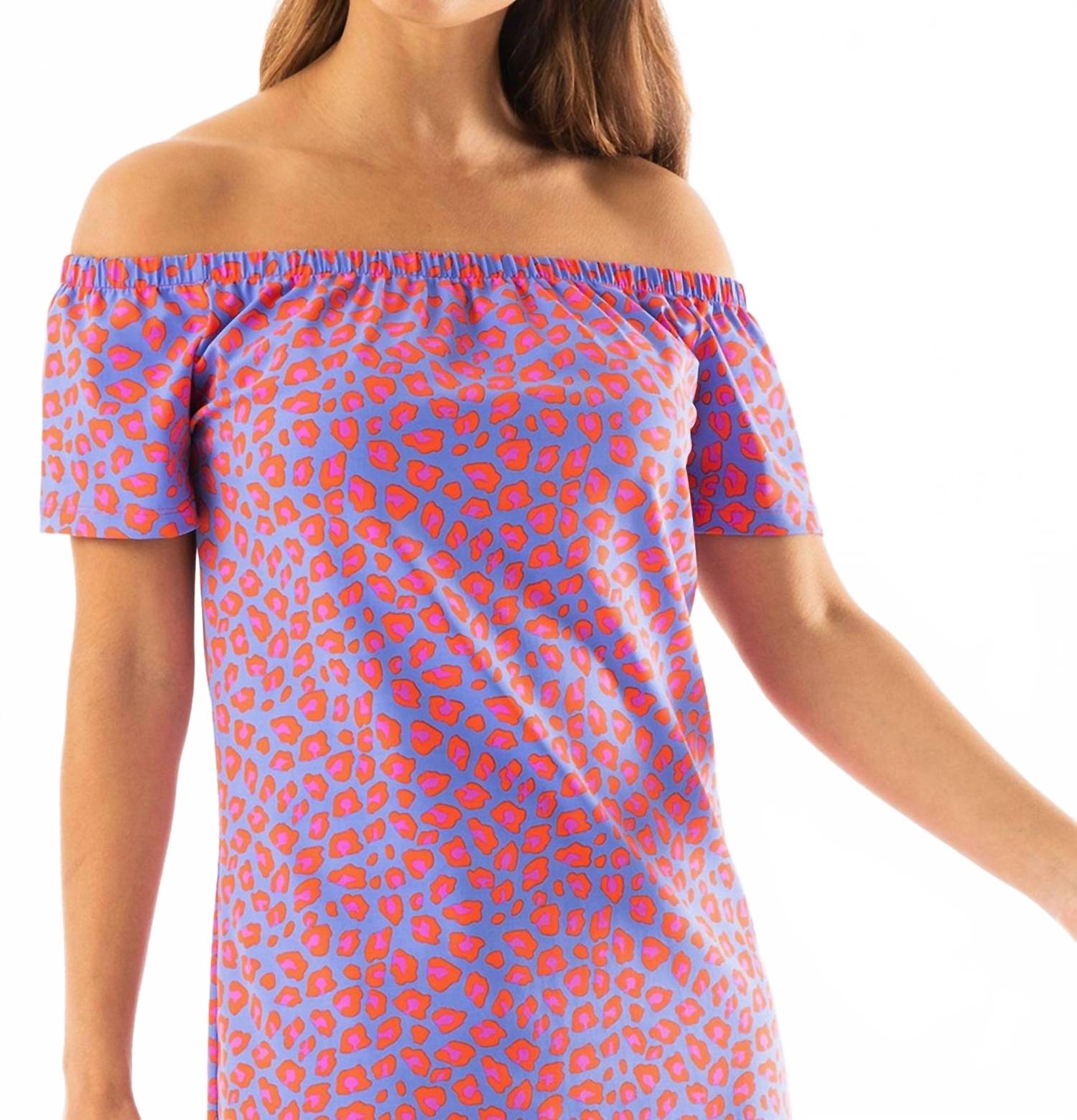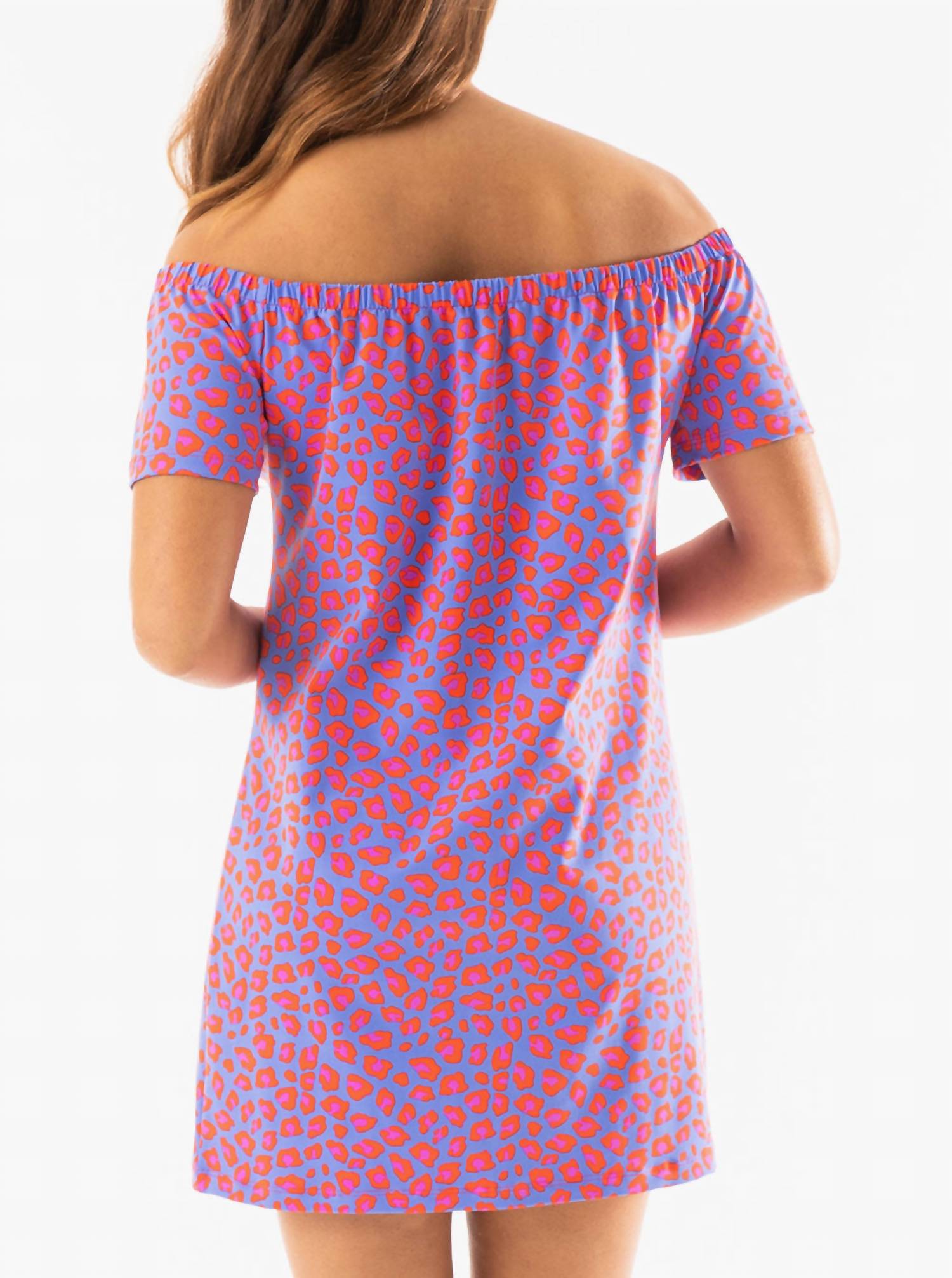 Шикарное мини-платье для женщин, готовых к любым летним приключениям. Платье-футляр с открытыми плечами, короткими рукавами и стильным анималистичным принтом в фиолетово-регатном цвете. Застежка-липучка обеспечивает быструю смену образа. Стирать в стиральной машине и сушить на вертеле.