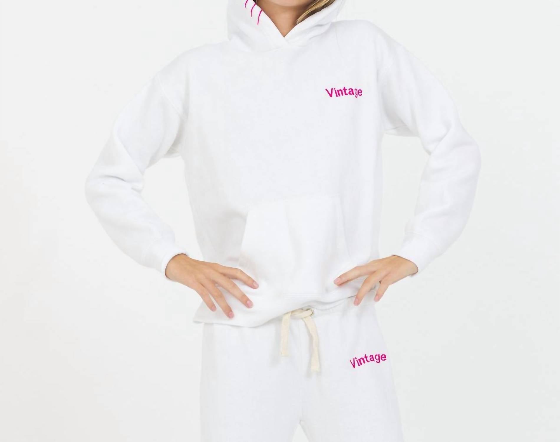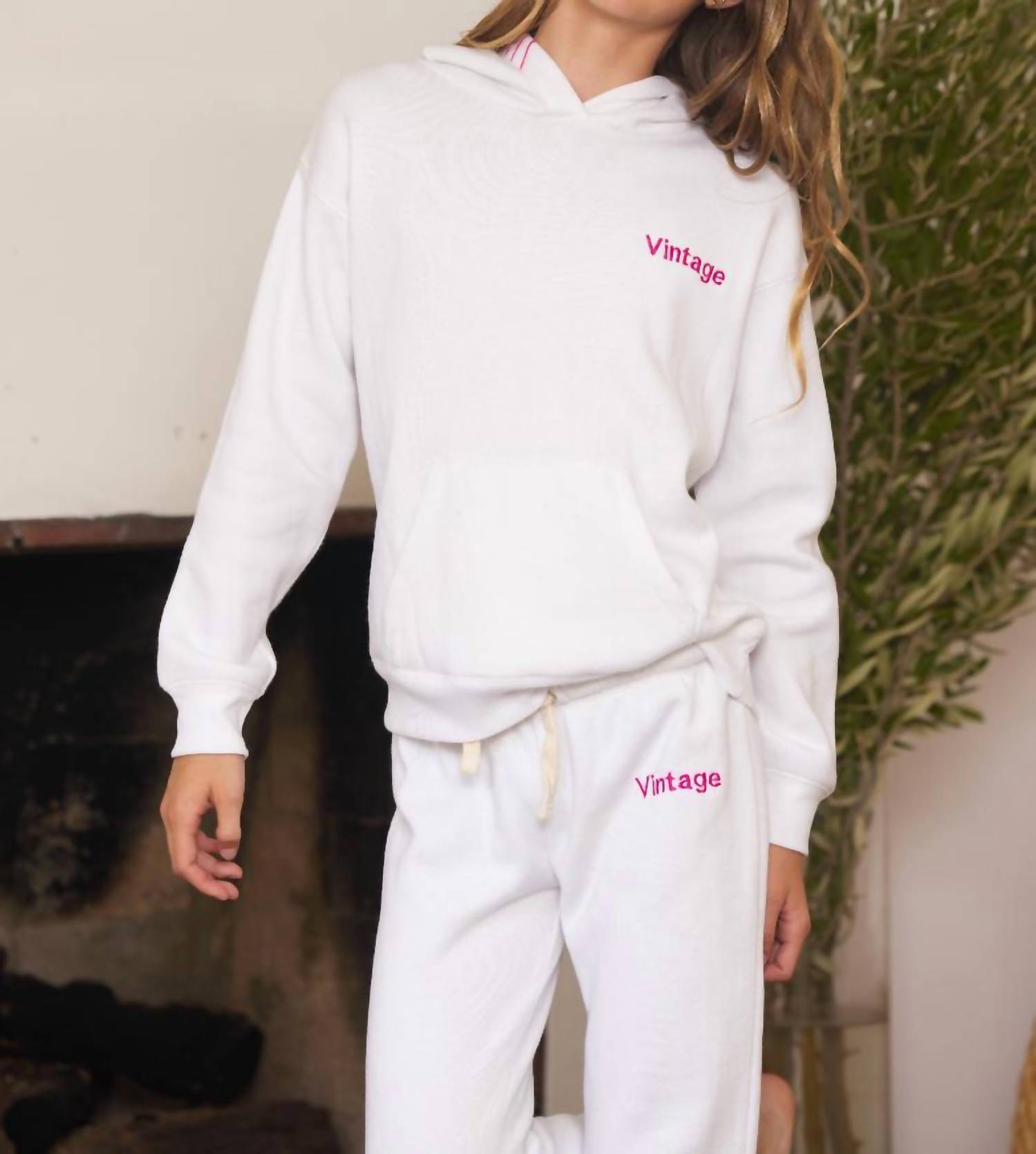 Представляем худи VH White Vintage Stitch от Vintage Havana - стильную вещь, сочетающую винтажный шарм с современным оттенком. Эта толстовка украшена ярким графическим узором с розовой строчкой, который эффектно смотрится на классическом белом фоне. Эта модель, созданная для девочек, гармонично сочетает в себе уют и стиль.