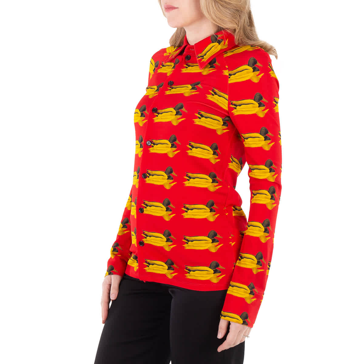 Женские топы Burberry. Категория «Мода» - Рубашки и блузки. Рубашка Burberry с длинным рукавом и монограммой. Эта рубашка с монограммой, отложным воротником, застежкой на пуговицы спереди, длинными рукавами реглан, манжетами на пуговицах и прямым нижним краем. Состав: 96% вискоза, 4% эластан. Сделано в Италии.