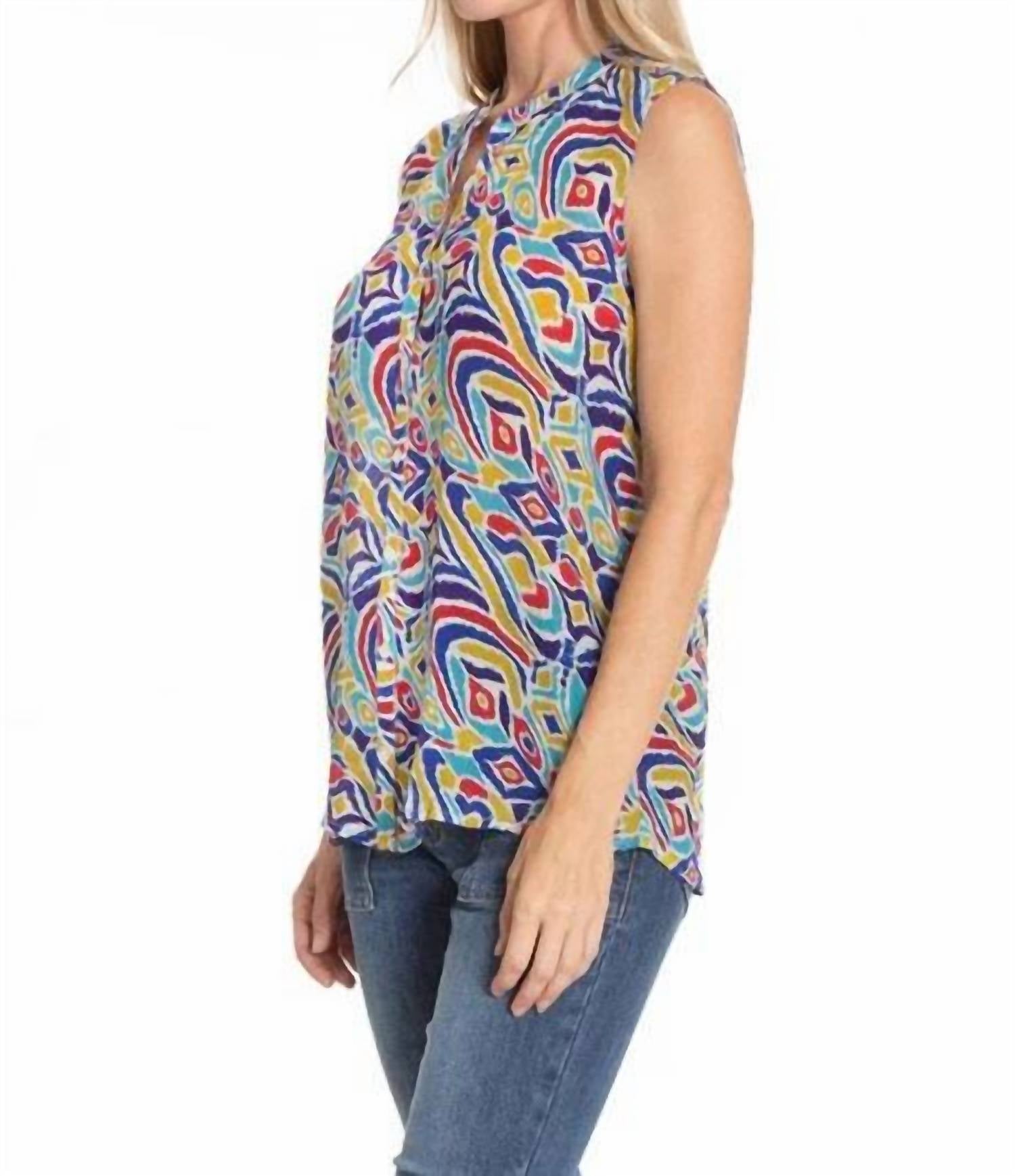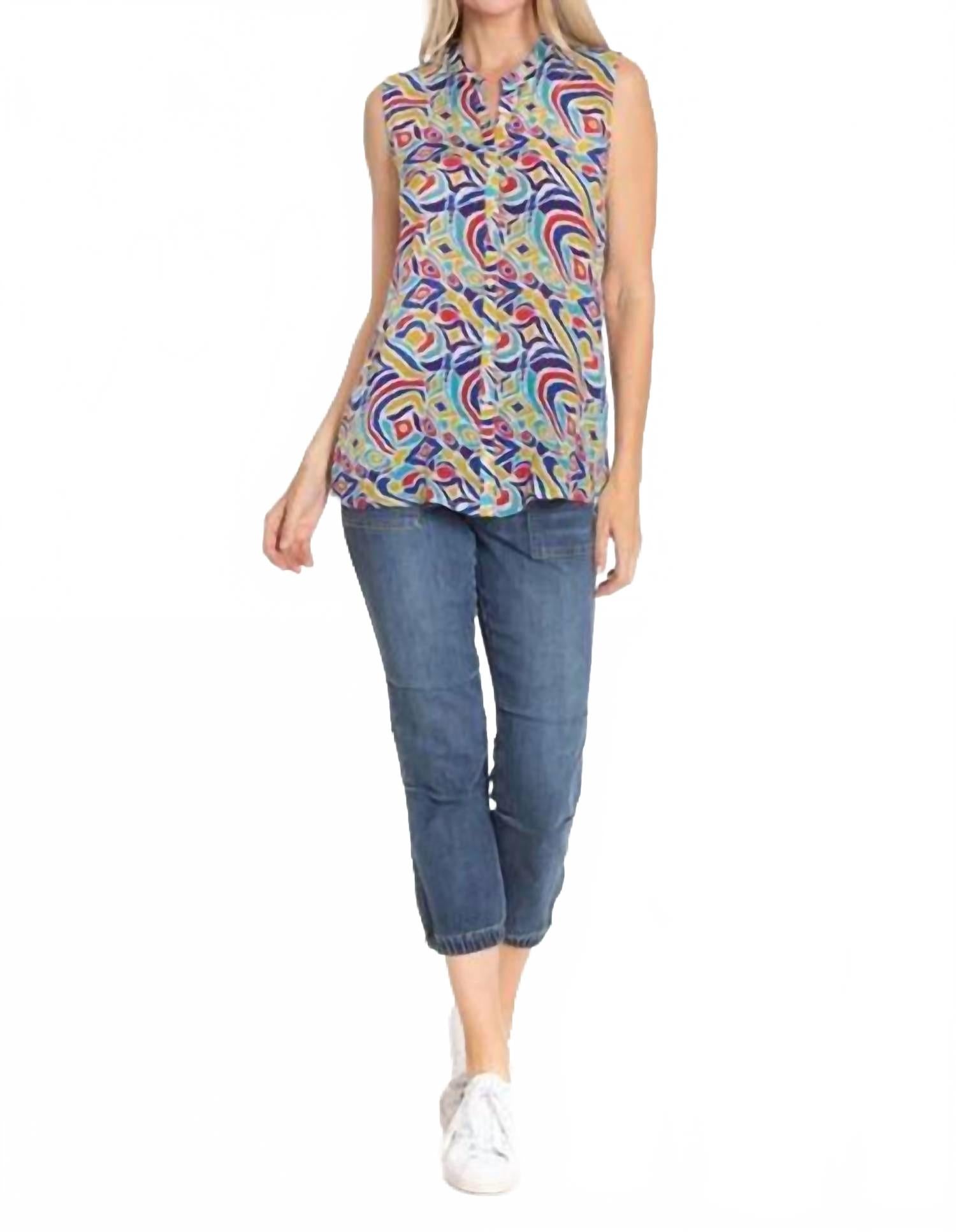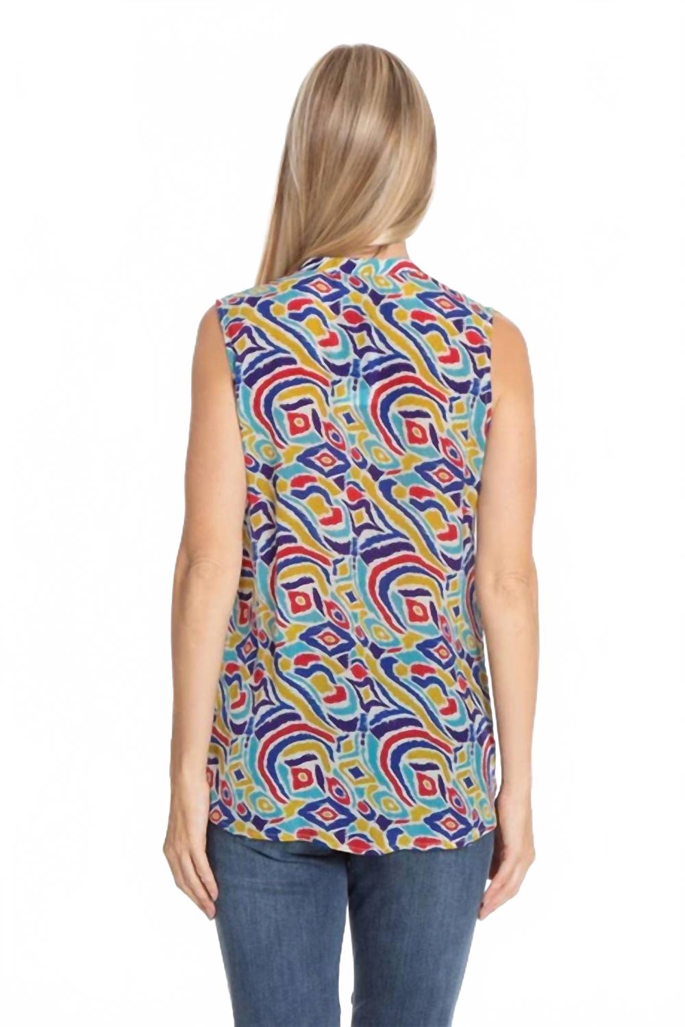 Идеальная майка для теплого времени года. Представляем майку на пуговицах от APNY - стильное дополнение к вашей коллекции благодаря яркому узору IKAT Multi. Эта модель без рукавов легко носить, а застежка на пуговицы создает классический образ. Этот топ с идеальным узором сочетает в себе стиль и комфорт. Уход: машинная стирка.