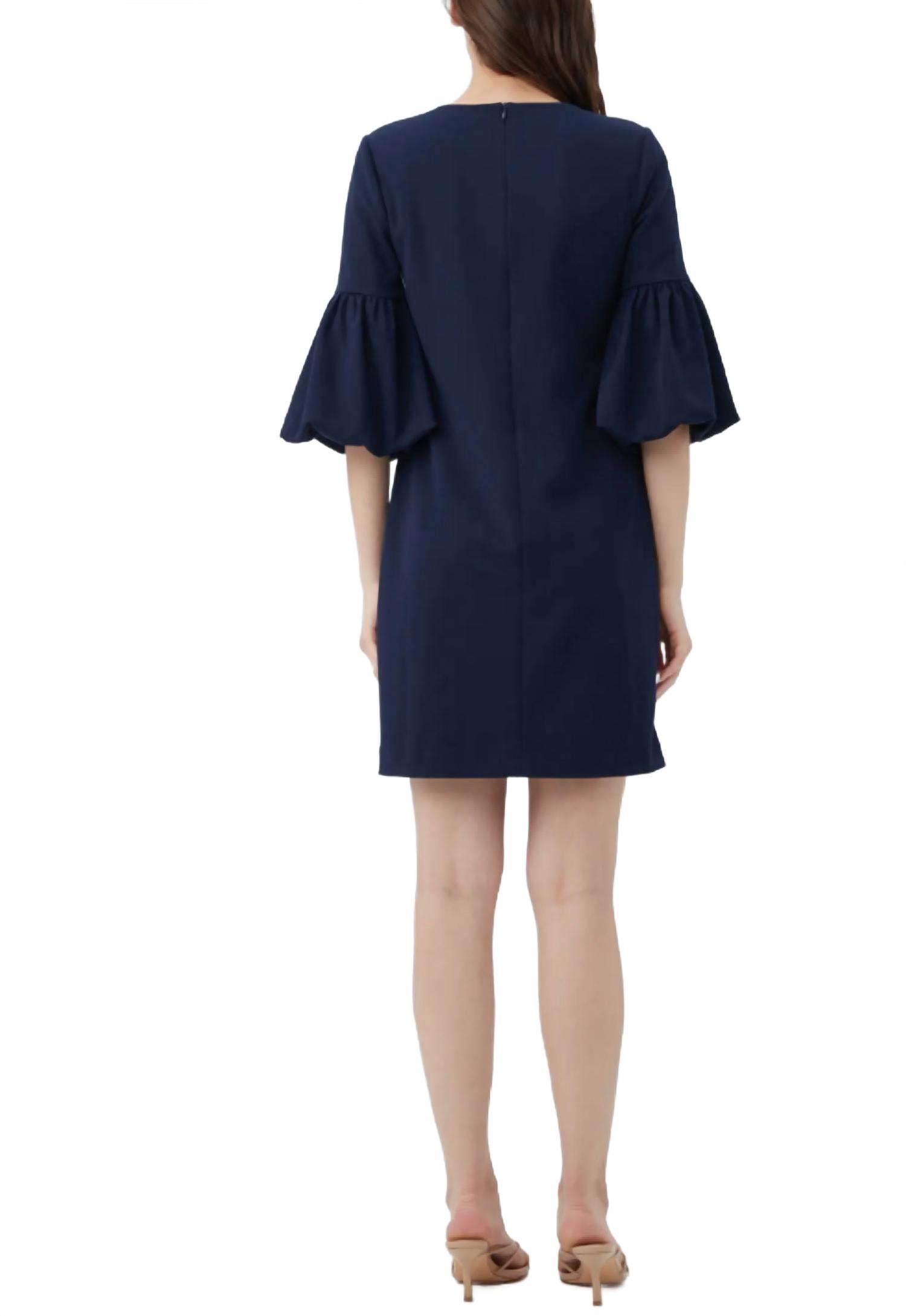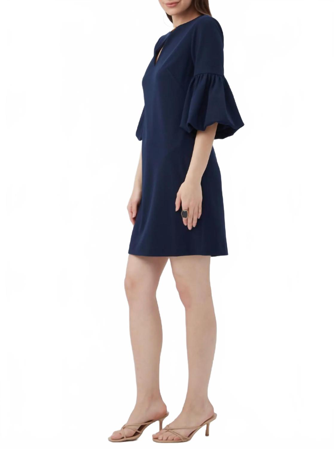 Это платье с элегантными рукавами-буфами и тонкой фурнитурой на горловине придает ему изысканность. Изящный облегающий силуэт обеспечивает облегающий крой, идеально подходящий как для деловых, так и для светских мероприятий.