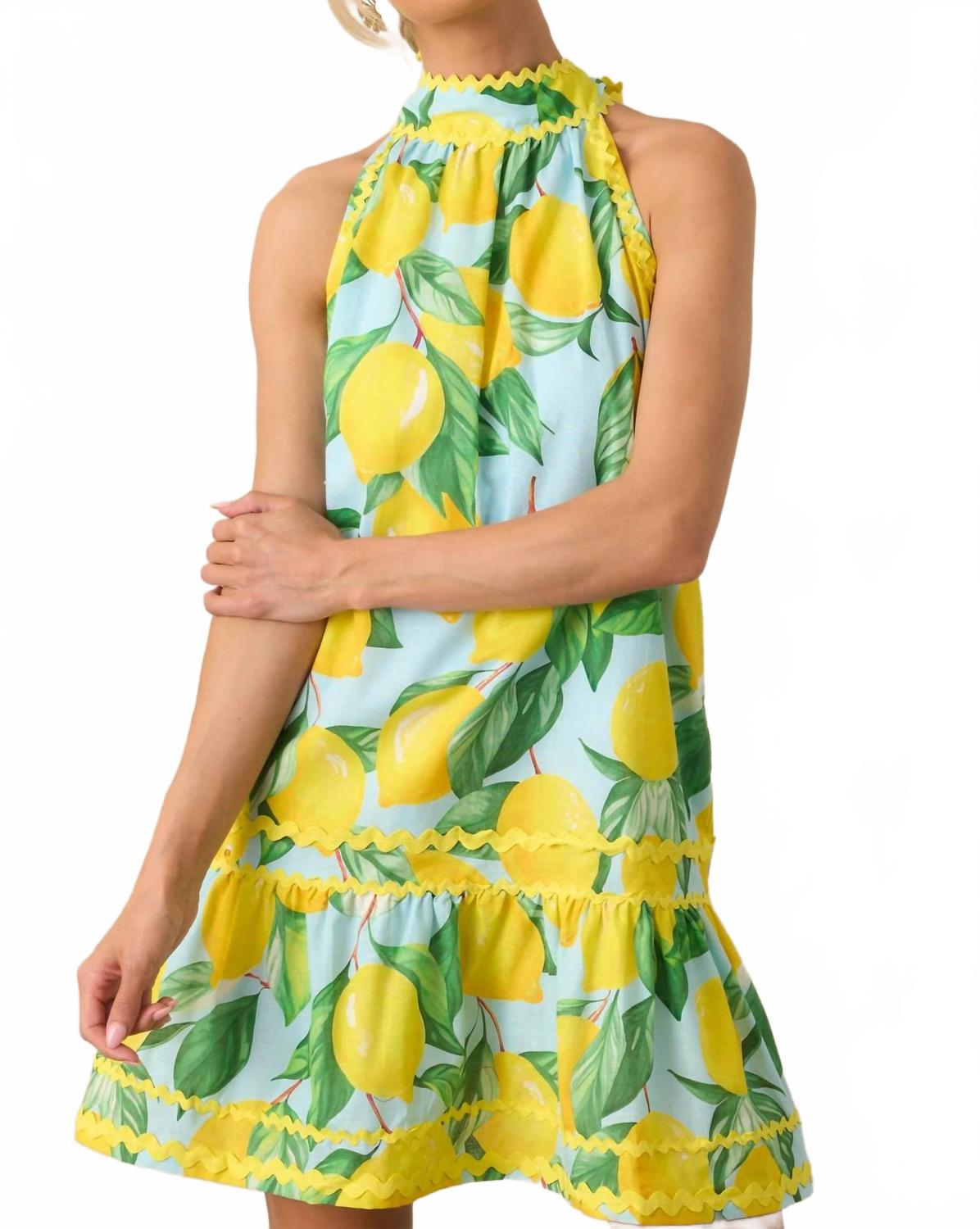 Короткое и воздушное платье для теплых дней. Представляем платье-халтер Prosperina Simone - великолепное дополнение к вашему гардеробу. Это платье-халтер с ярким лимонным принтом излучает свежесть и жизнерадостность. Благодаря элегантному дизайну и роскошной ткани оно станет идеальным выбором для любого мероприятия!