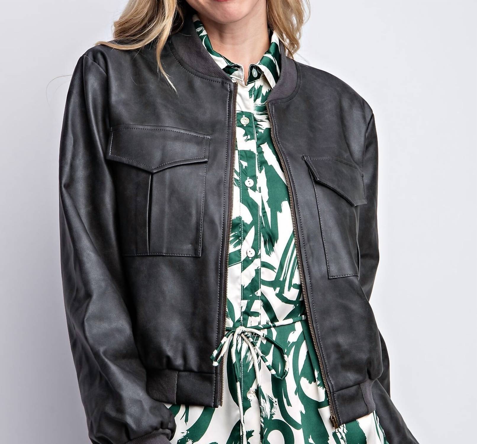 Шикарное дополнение к вашей коллекции уличной одежды. Изготовлена из мытой веганской кожи. Куртка-бомбер с длинными рукавами, бейсбольным воротником и удобным передним карманом-карго. Застегивается на молнию. Ручная стирка.