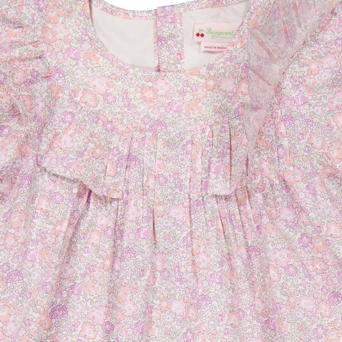 Топ Bonpoint для девочек. Цвет: розовый. Топ Bonpoint для девочек Fosca с цветочным узором. Этот хлопковый топ застегивается на пуговицы сзади, имеет складки, короткие рукава-буфы с эластичными манжетами, оборку на круглой горловине и украшен цветочным узором. Состав: 100% хлопок.