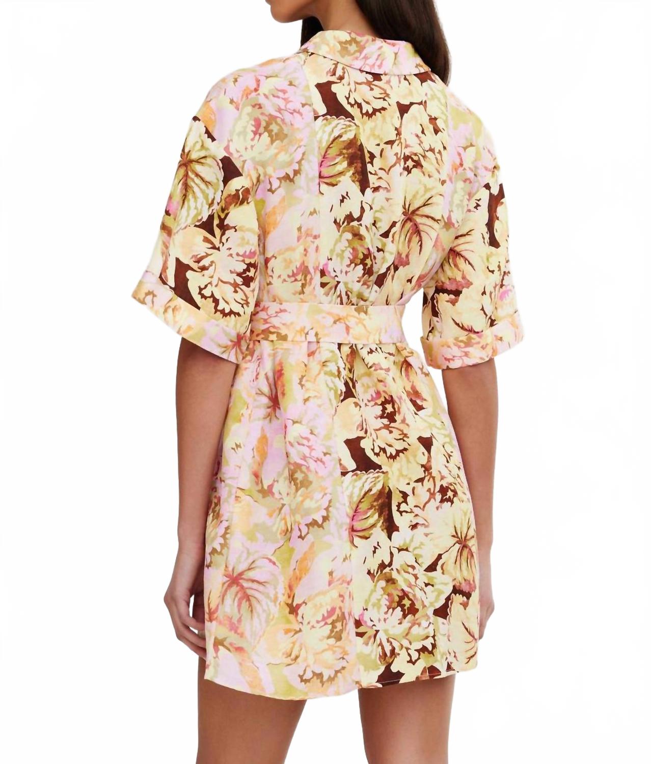 Это платье-рубашка свободного кроя выполнено из структурированной ткани с добавлением льна. Оно имеет воротник-стойку, съемный пояс на талии и вертикальную кружевную отделку по всему телу, придающую ему изысканный вид. Состав: 55% лен, 45% вискоза Ecovero.