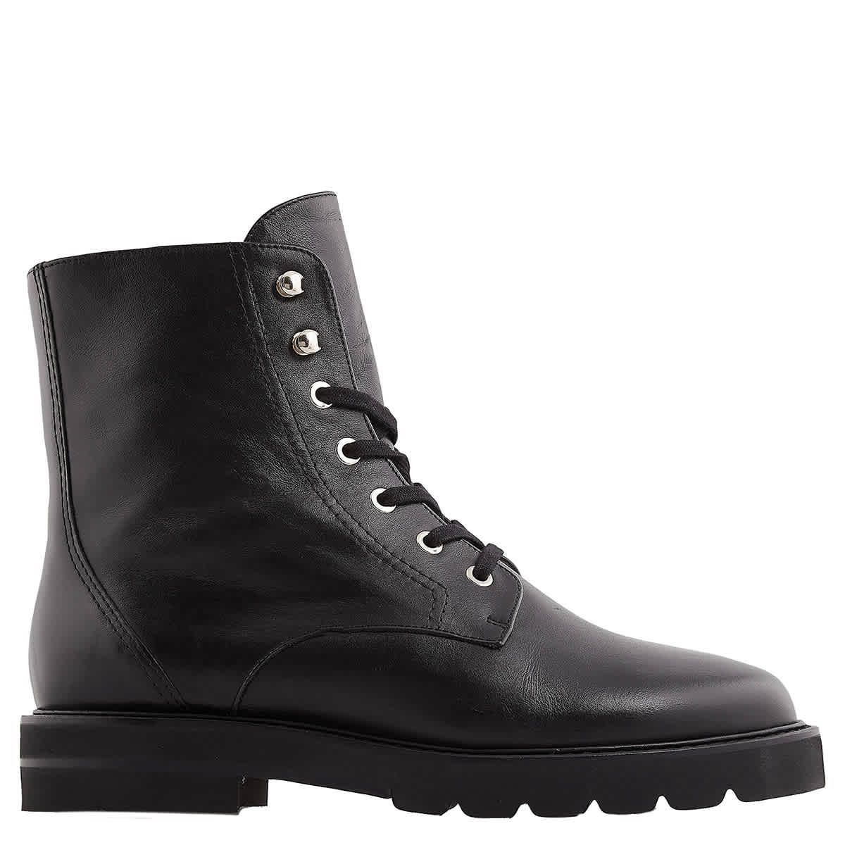 Женские ботинки Stuart Weitzman. Цвет: черный. Кожаные ботинки Mila Lift с круглым носком, застежкой-молнией сбоку и ребристой резиновой подошвой. Подкладка: кожа 100%; подошва: резина 100%; верх: кожа 100%.