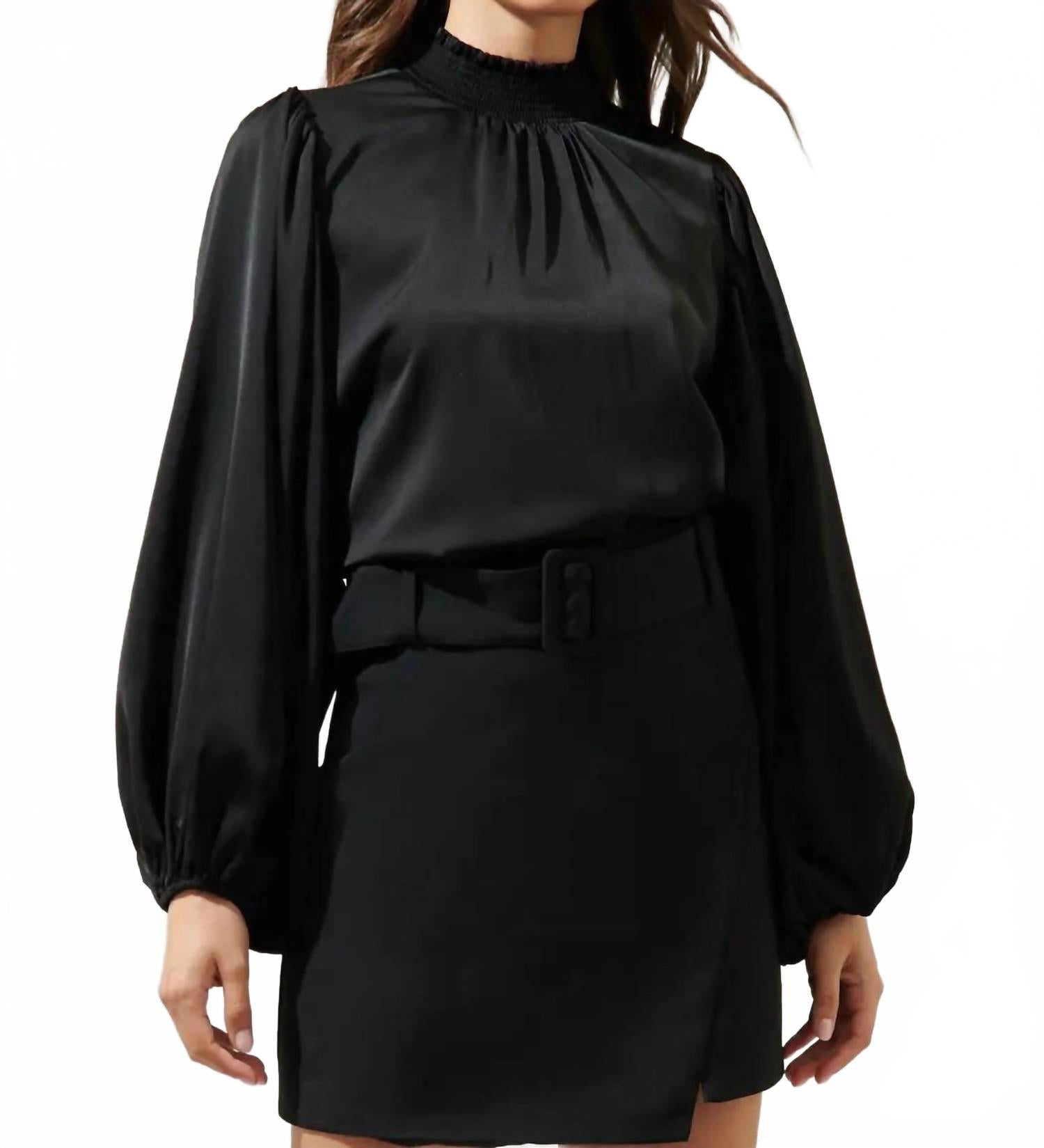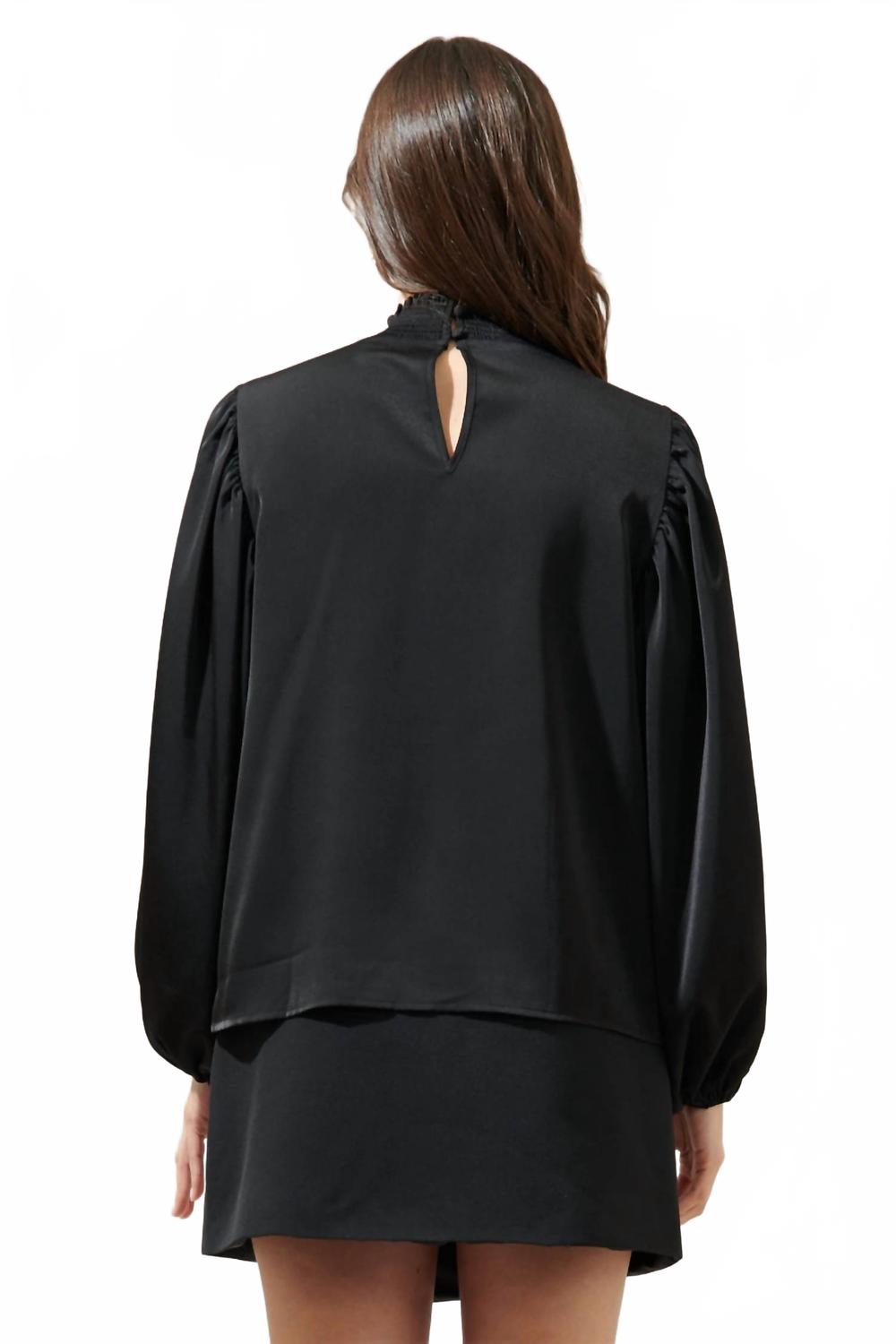Ощутите элегантный стиль в классическом черном цвете. Длинные, объемные рукава-фонарики и роскошная атласная текстура, подчеркнутая присборенным ложным вырезом. Застежка на пуговицы. Ручная стирка. Длина: 24,75 дюйма.