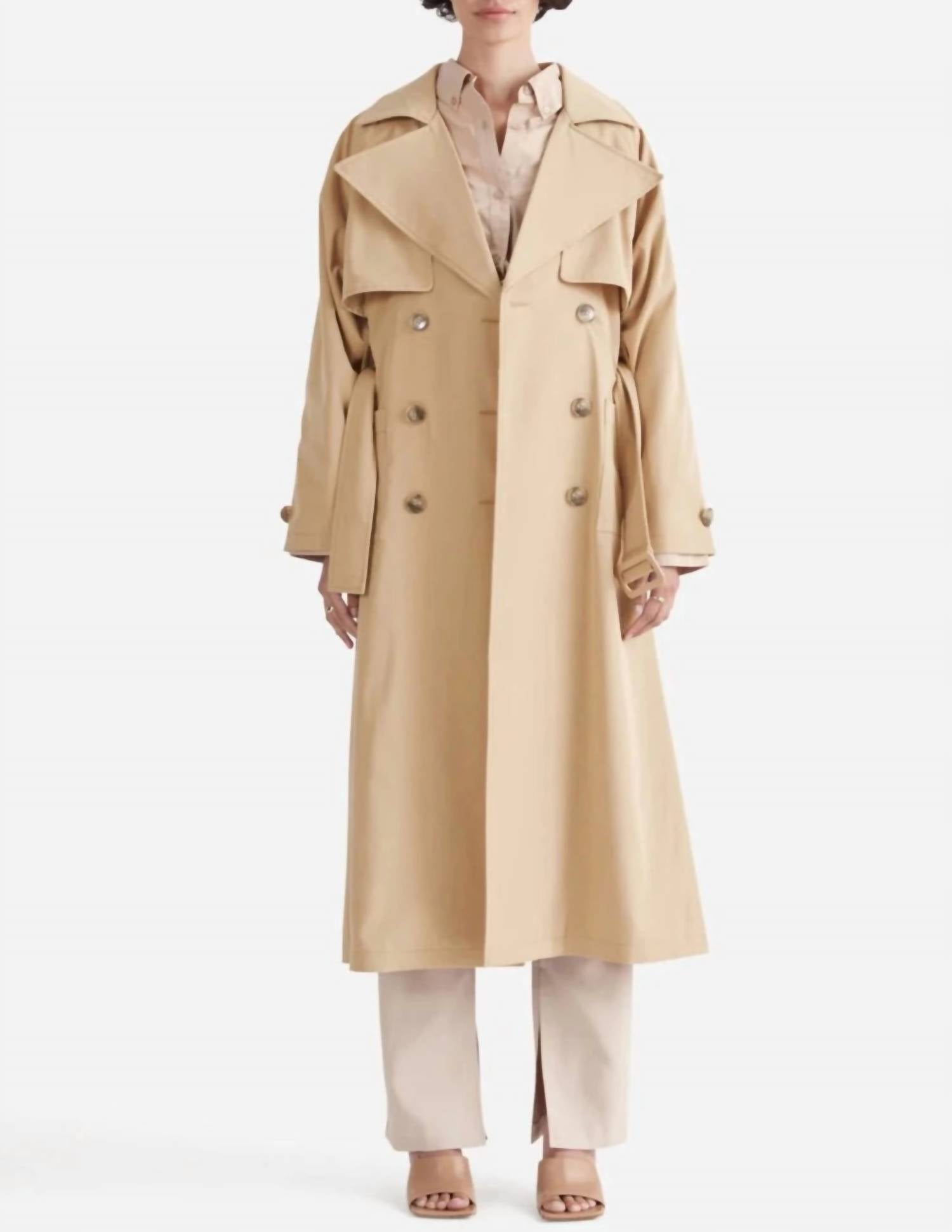 Этот тренчкот, изготовленный из высококачественного 100% полиэстера, имеет большие лацканы, две ветрозащитных планки и плиссировку на спине. Застежка на пуговицы и практичные карманы делают его стильным и функциональным.