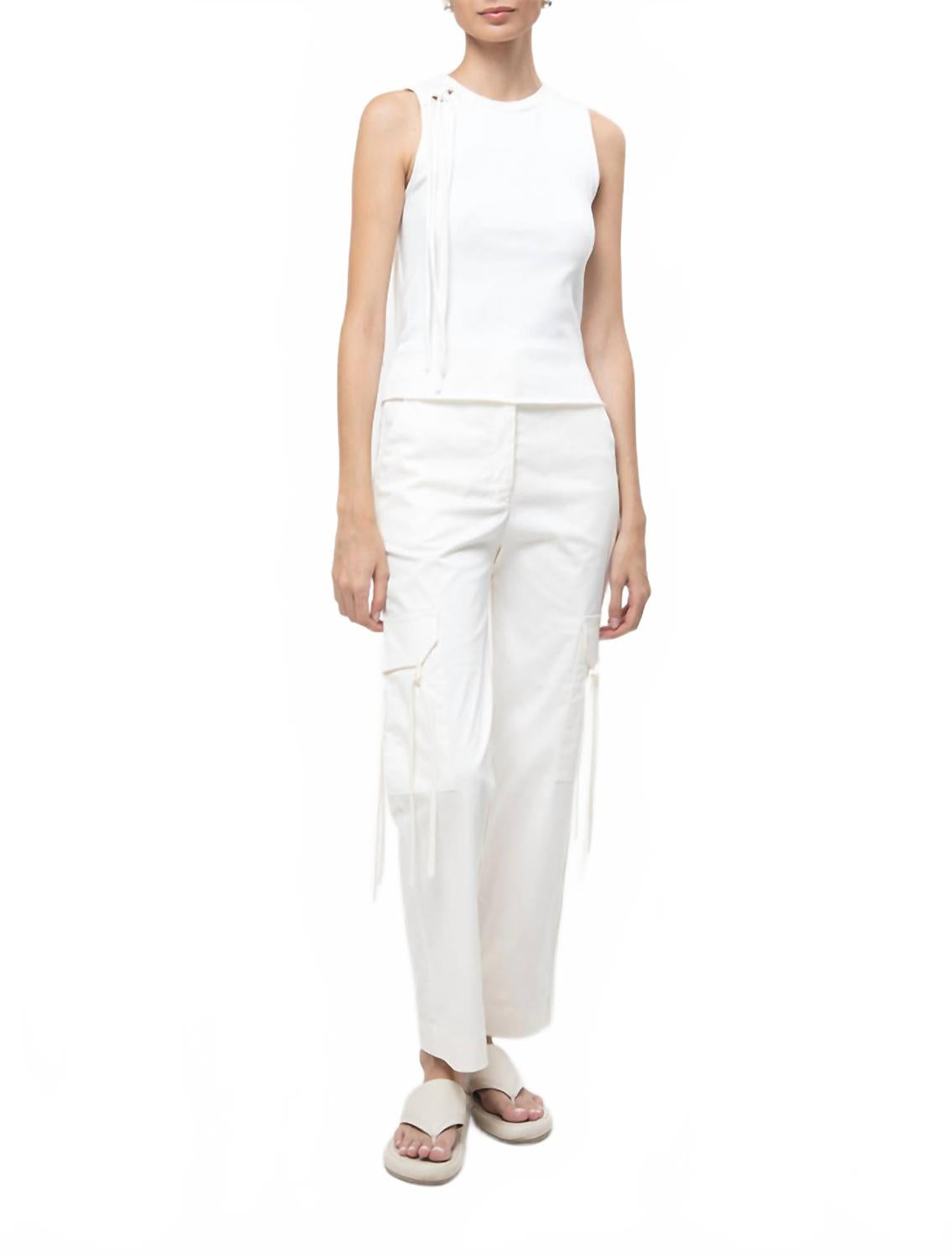 Эта хлопковая майка в рубчик имеет четкий, приталенный силуэт в современной интерпретации. Бахрома на плечах добавляет изящную изюминку этой повседневной вещи. Идеально подходит для многослойного ношения или как самостоятельная вещь.