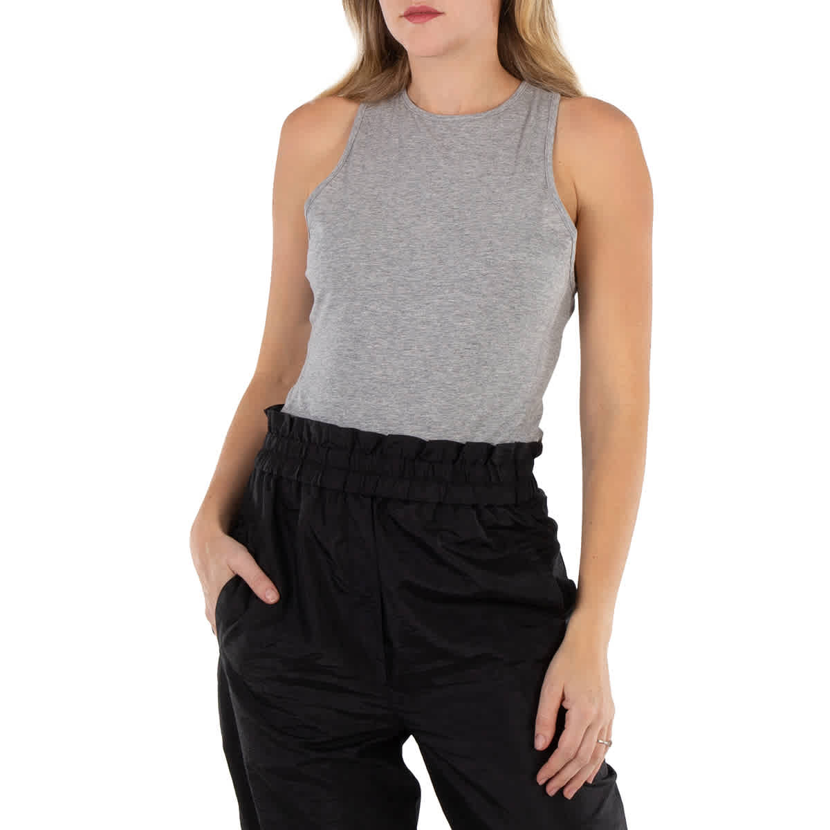 Женские топы Tibi. Категория: Жилеты. Цвет: серый меланж. Женский боди Tibi, серый меланж, с круглым вырезом и спинкой-борцовкой. Легкий боди из 100% хлопка без рукавов, с высоким круглым вырезом, приталенным силуэтом и застежкой на кнопку. 100% хлопок.