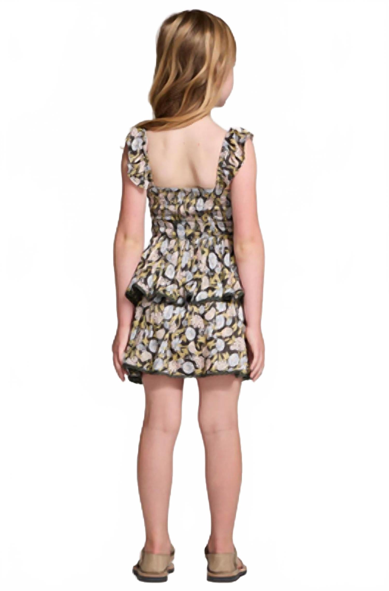 Двухъярусная юбка Raynbow, перед которой невозможно устоять, кружась и кружась, - настоящая мечта для танцпола. Лиф с рюшами и развевающиеся бретельки дополняют образ. Девочке понравится носить это очаровательное мини-платье с мамой. Размеры: 4/5 и 6/7. Состав: 100% вискоза.