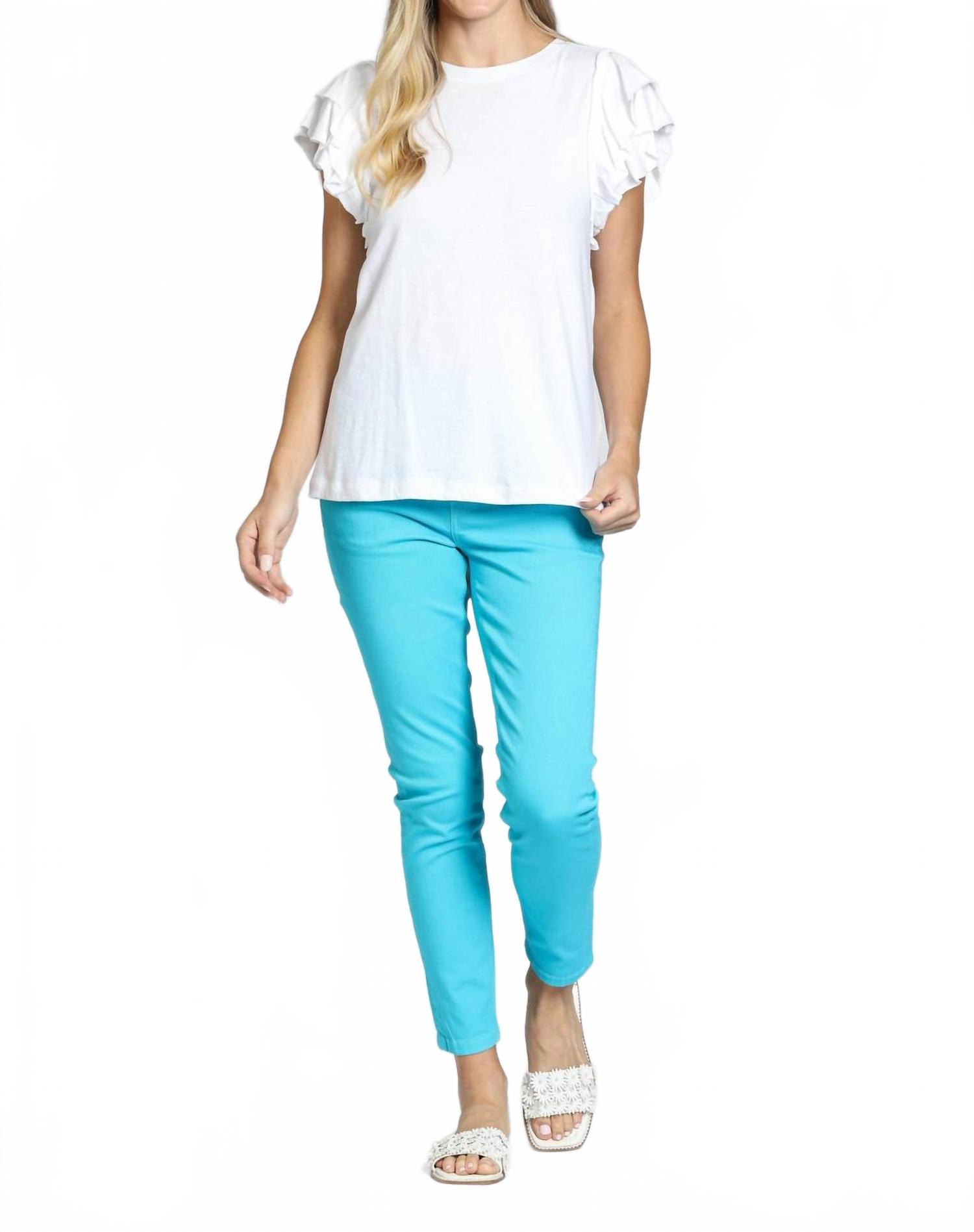 Эта женская футболка с короткими изящными рукавами, однотонным узором и классическим круглым вырезом. Застежка: легко надевается. Идеально подходит для тех, кто ценит сочетание простоты и элегантности.