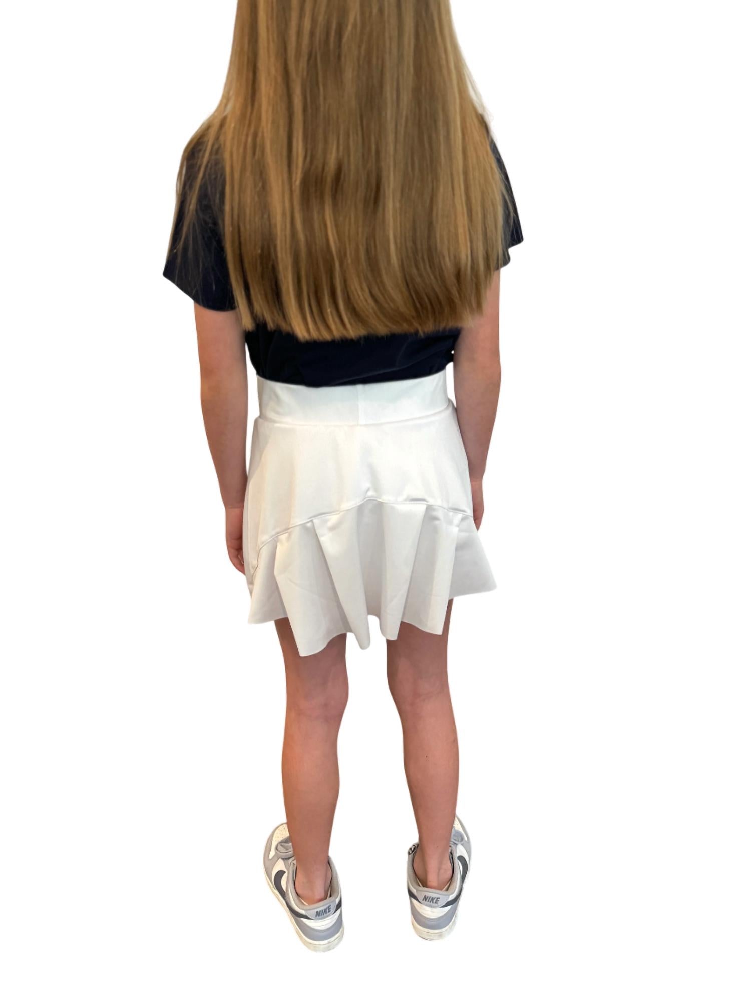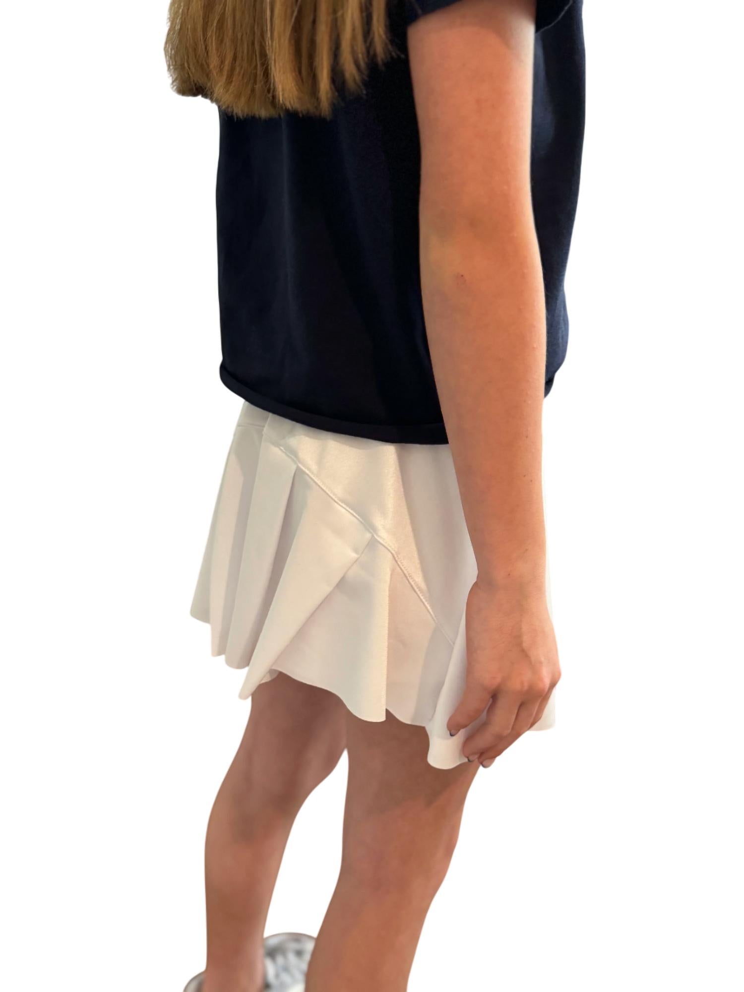 Эта юбка-шорты белоснежного цвета с широким гладким поясом, отложным швом и широкими складками сзади дополнена вшитыми шортами для комфорта и удобства. Изготовлена из 95% вискозы и 5% спандекса, обеспечивает плотную, но мягкую посадку. Уход: машинная стирка.