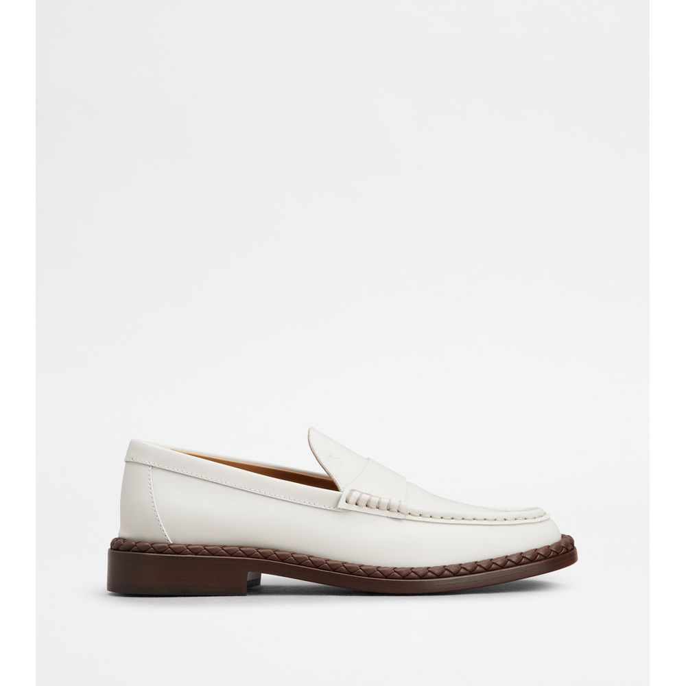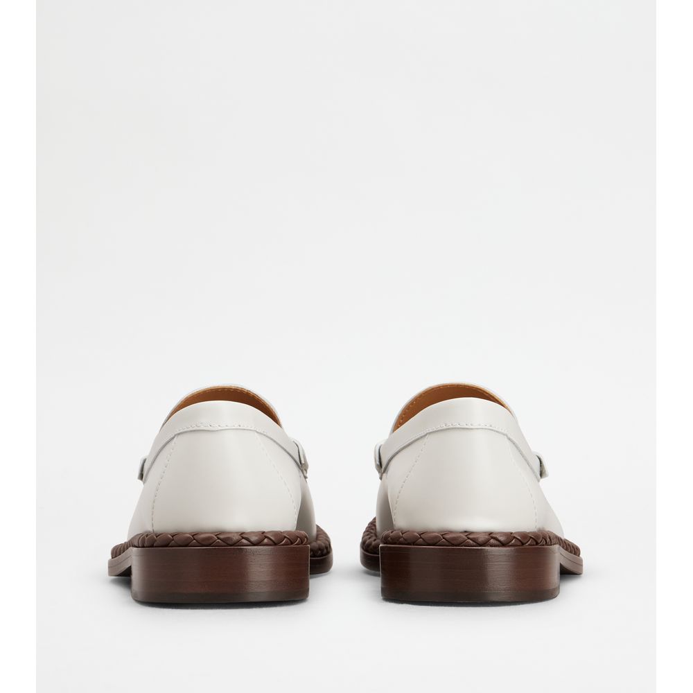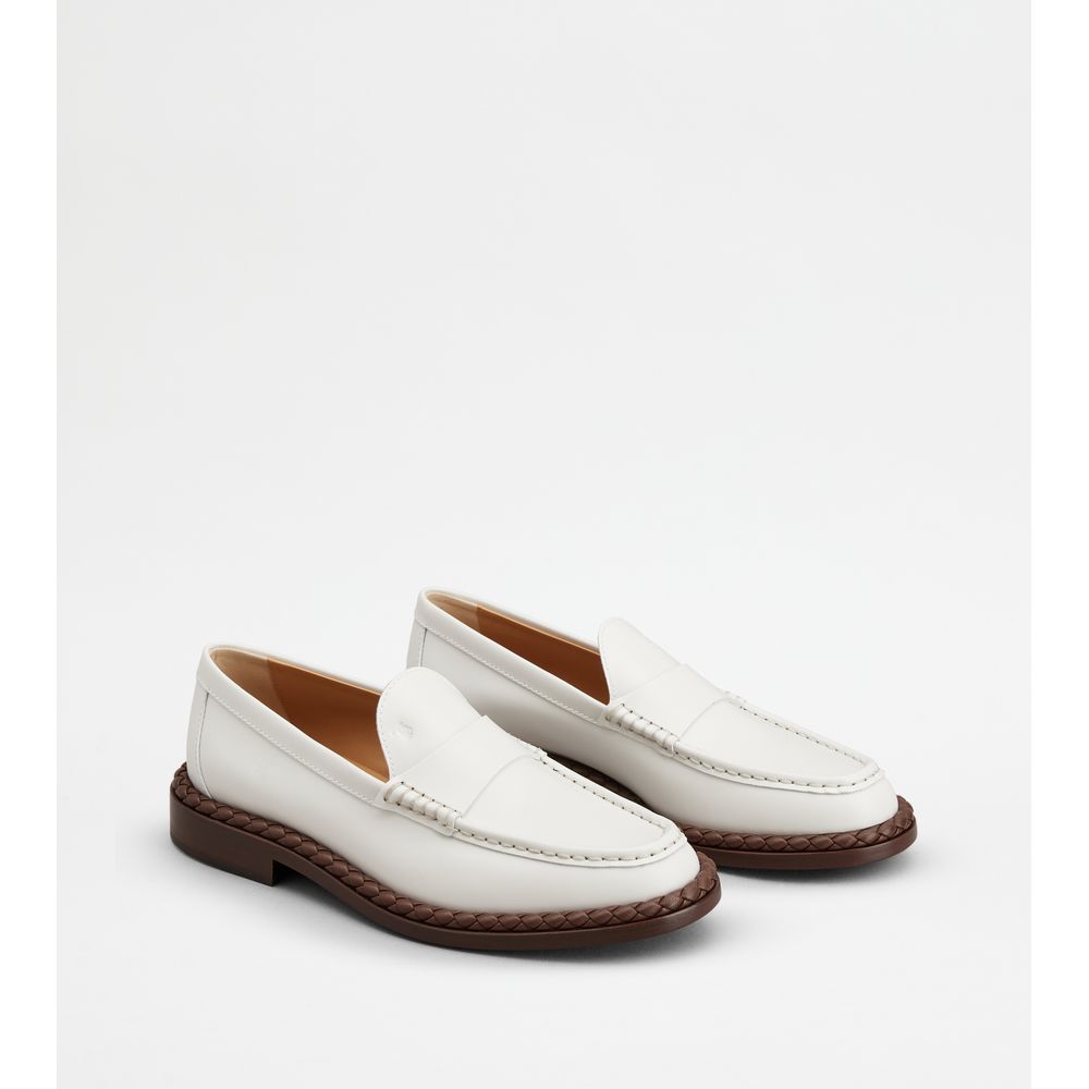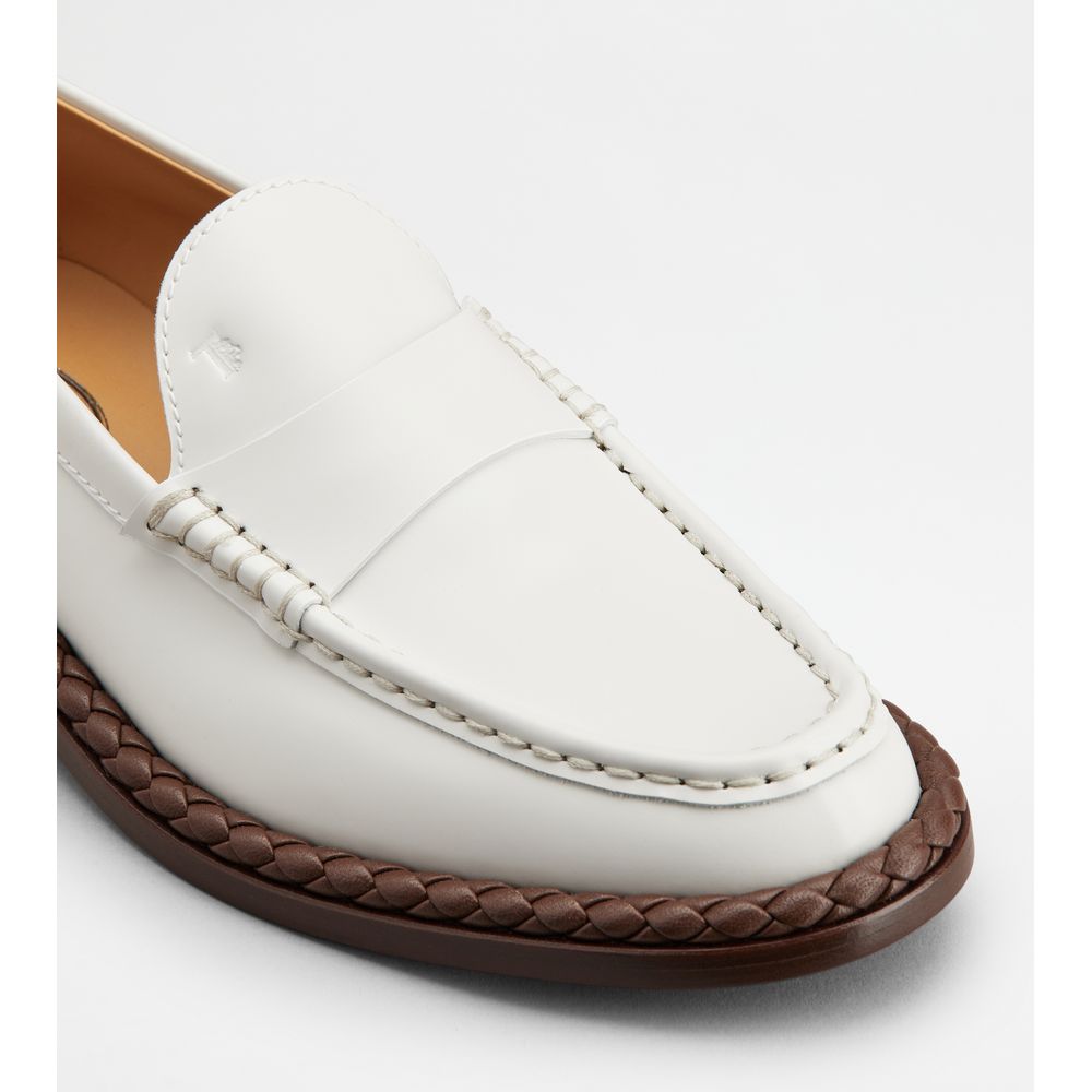 Кожаные лоферы с плетеной каймой TOD's, белый