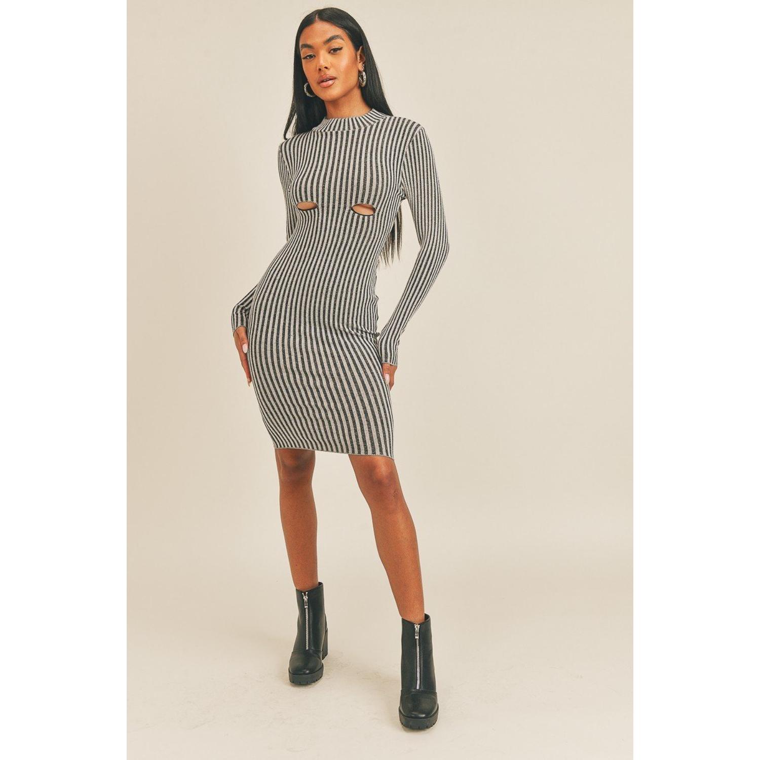 Полосатое миди-платье с длинными рукавами TRUEDAMES, черно-белый