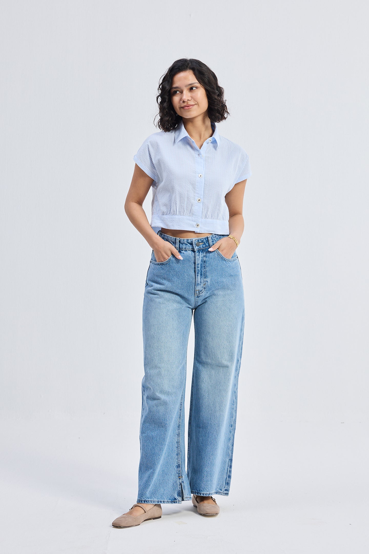 Оверсайз укороченная рубашка в классическую полоску Reistor, Linear Rhythm