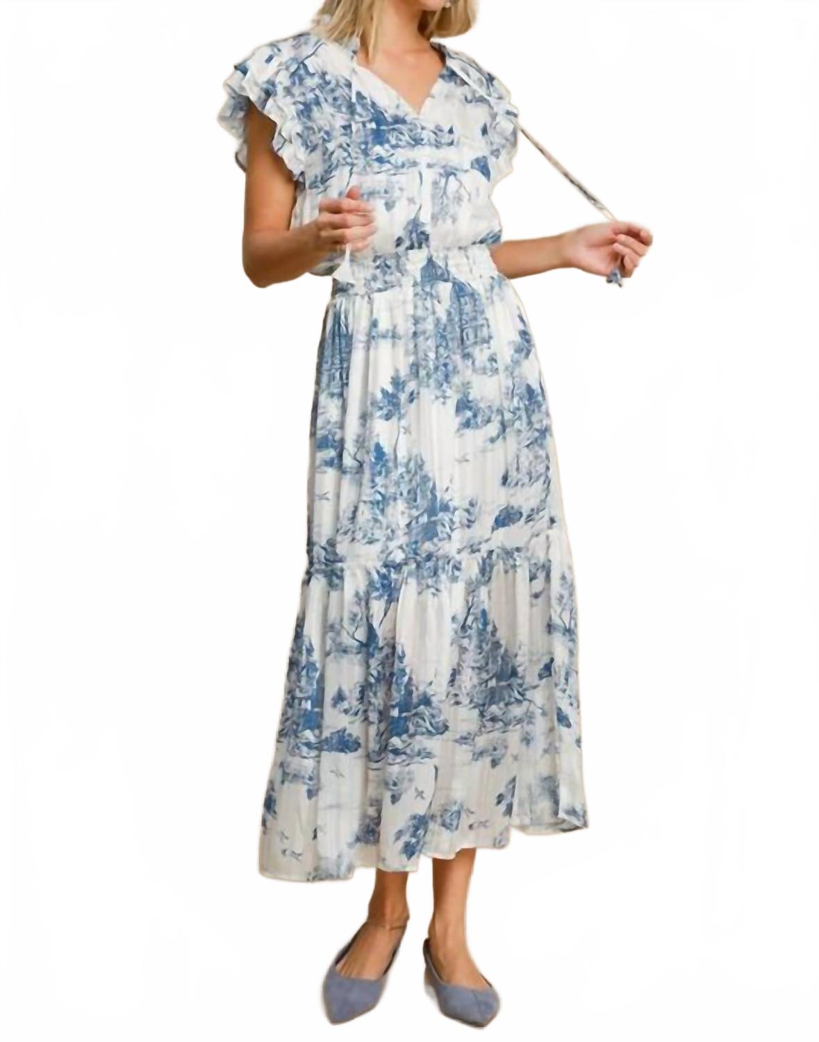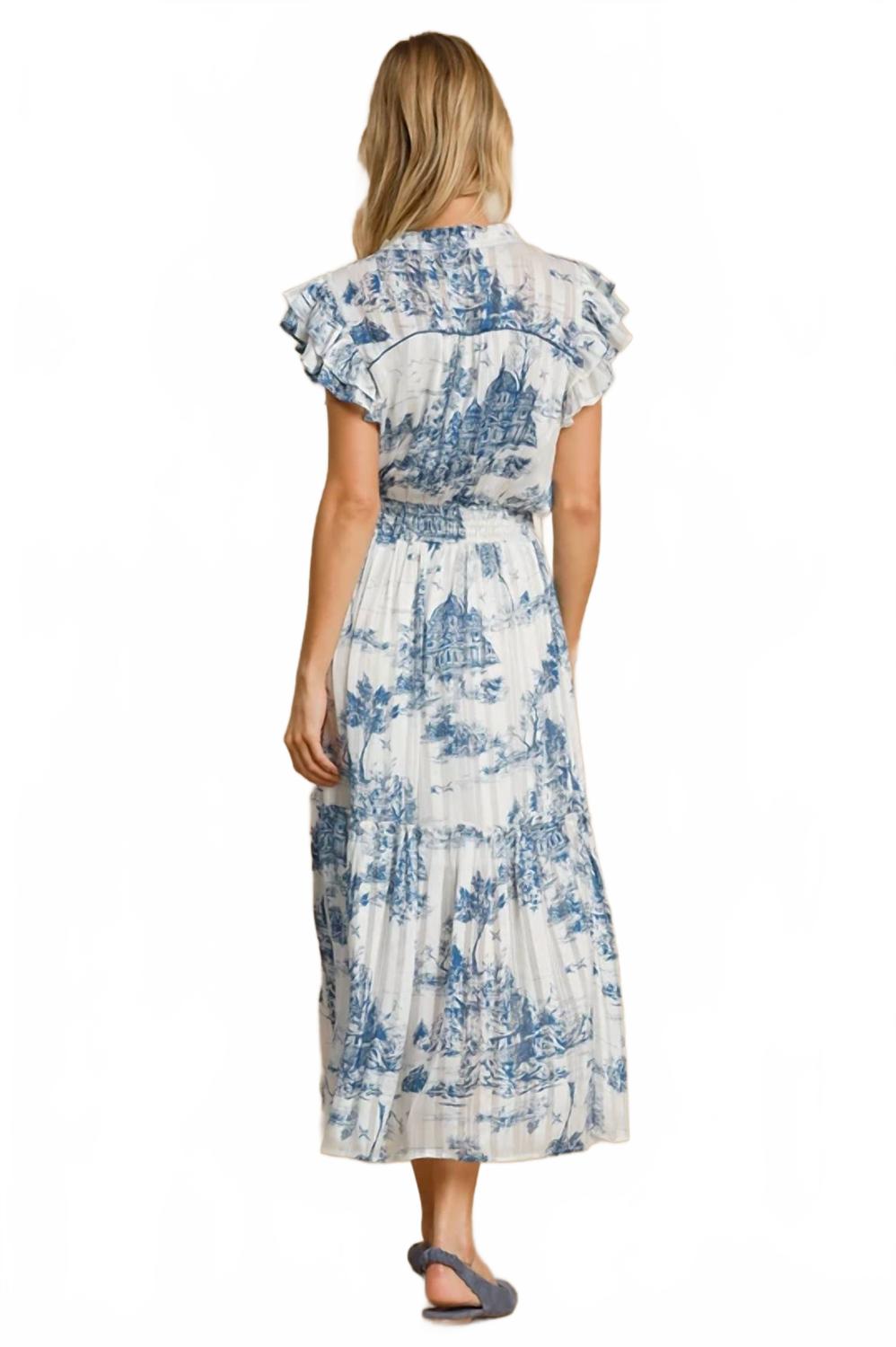 Двухцветное платье миди с пейзажным принтом в белом цвете Umgee