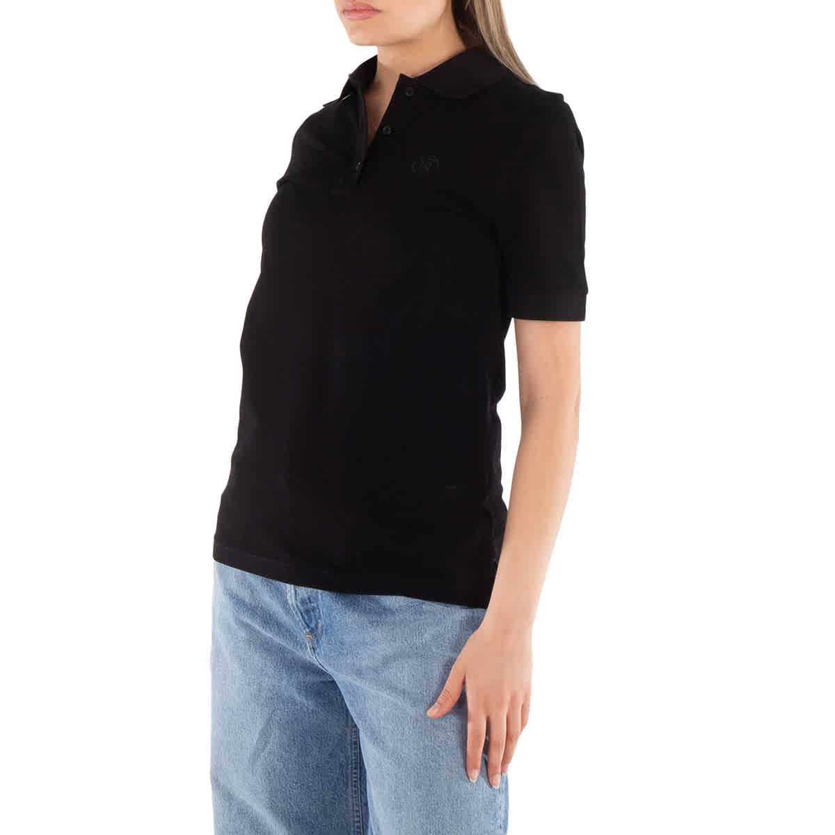 Женские топы Burberry. Категория: Рубашки-поло. Цвет: черный. Рубашка-поло Burberry TB с вышитым воротником. Эта рубашка-поло имеет воротник-поло, застежку на пуговицы спереди и короткие рукава. 100% хлопок. Сделано в Португалии.