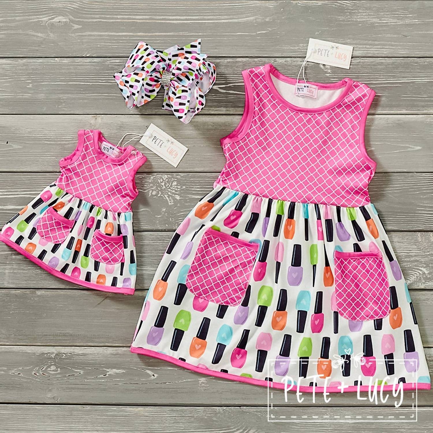 Ваша маленькая модница будет выглядеть просто неоново в этом розовом платье с лаком для ногтей! Милый рисунок на ногтях и очаровательный стиль - идеальный образ для любой малышки. Пусть ваша малышка сияет! *Аксессуары продаются отдельно