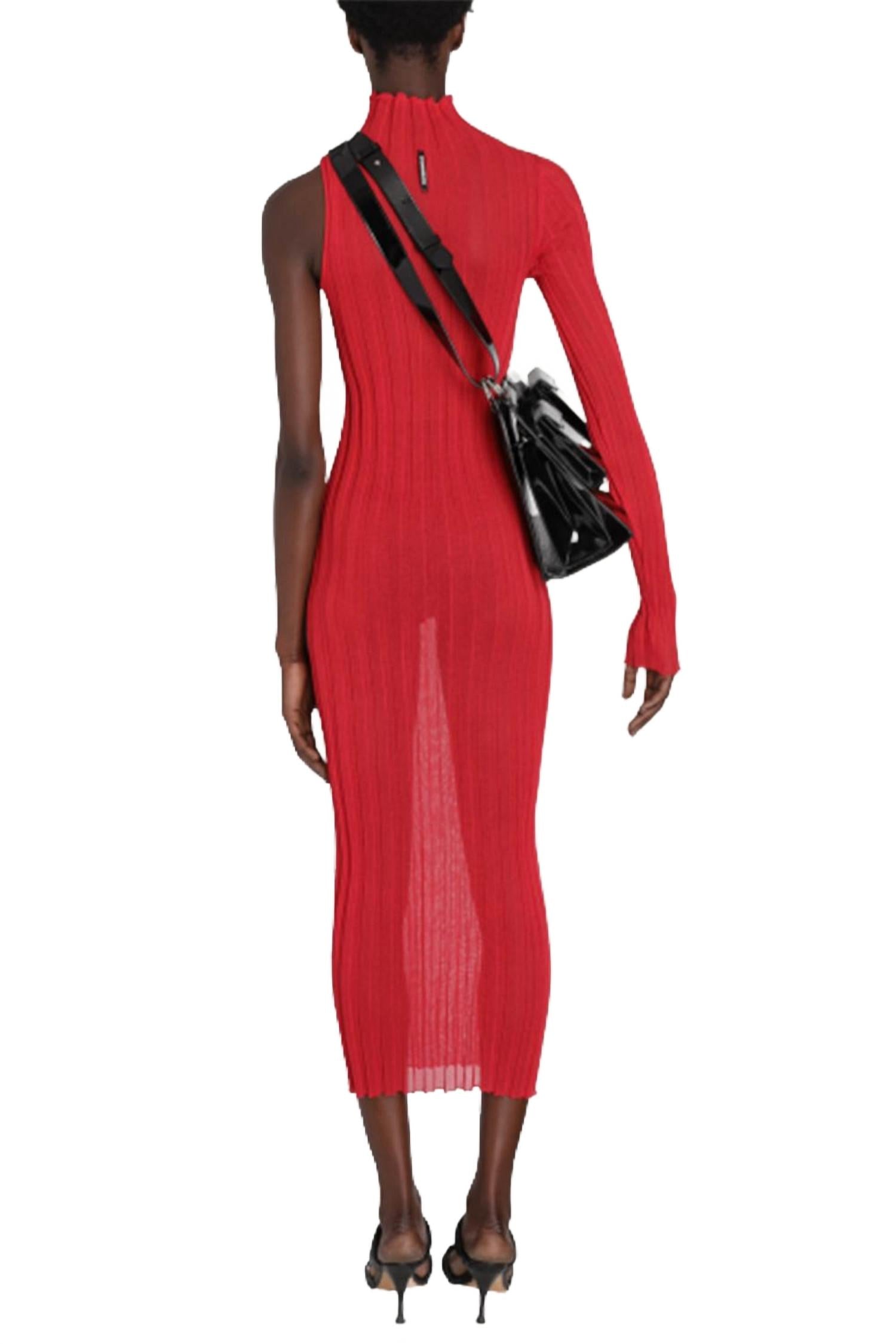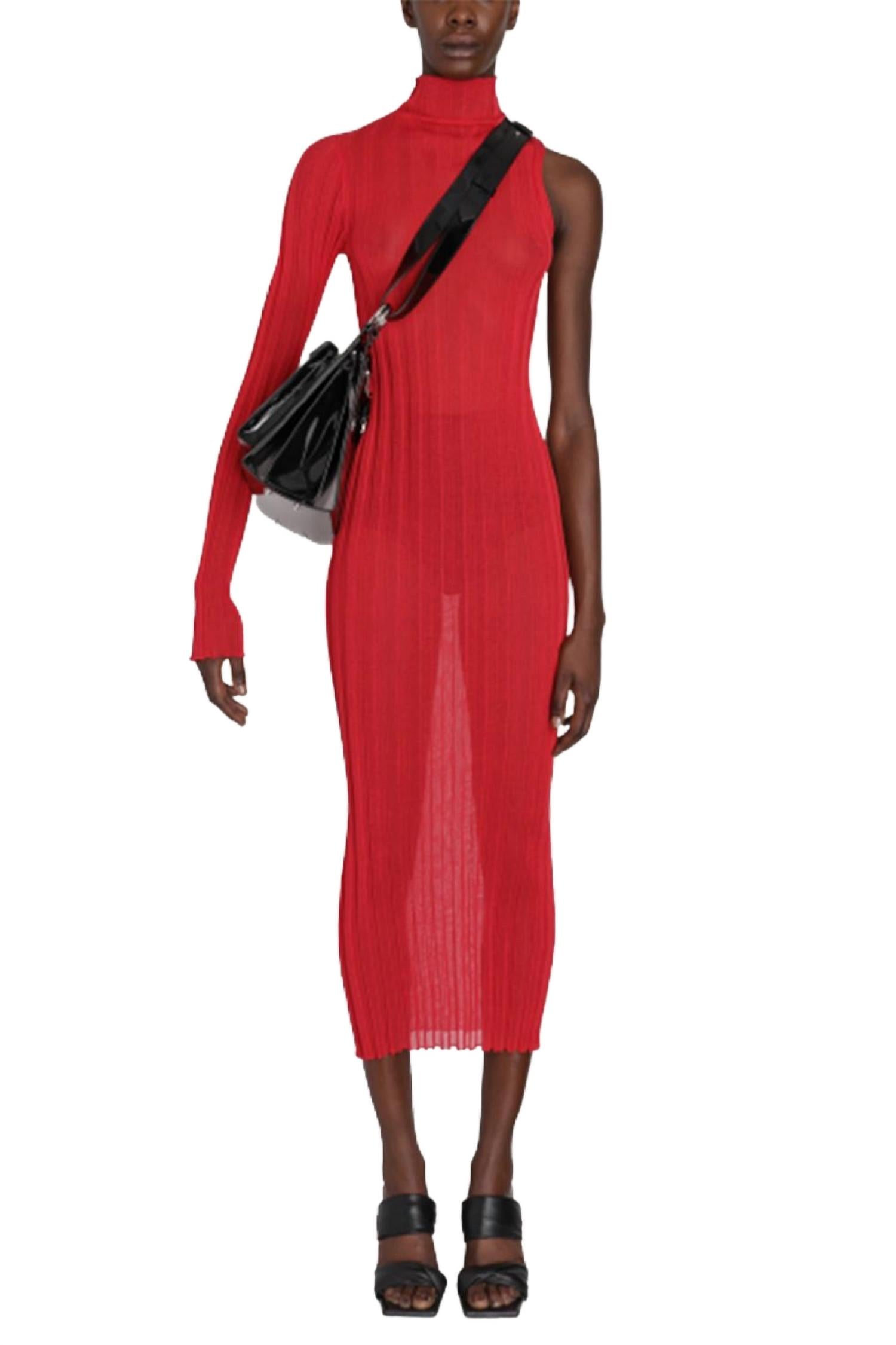 Дополните этот макси-платье вашим любимым эффектным ожерельем и сандалиями для идеального образа. Платье выполнено из хлопковой смеси в рубчик, облегает фигуру и имеет эффектный вырез на одно плечо. Состав: 82% хлопок-мако, 18% полиамид.