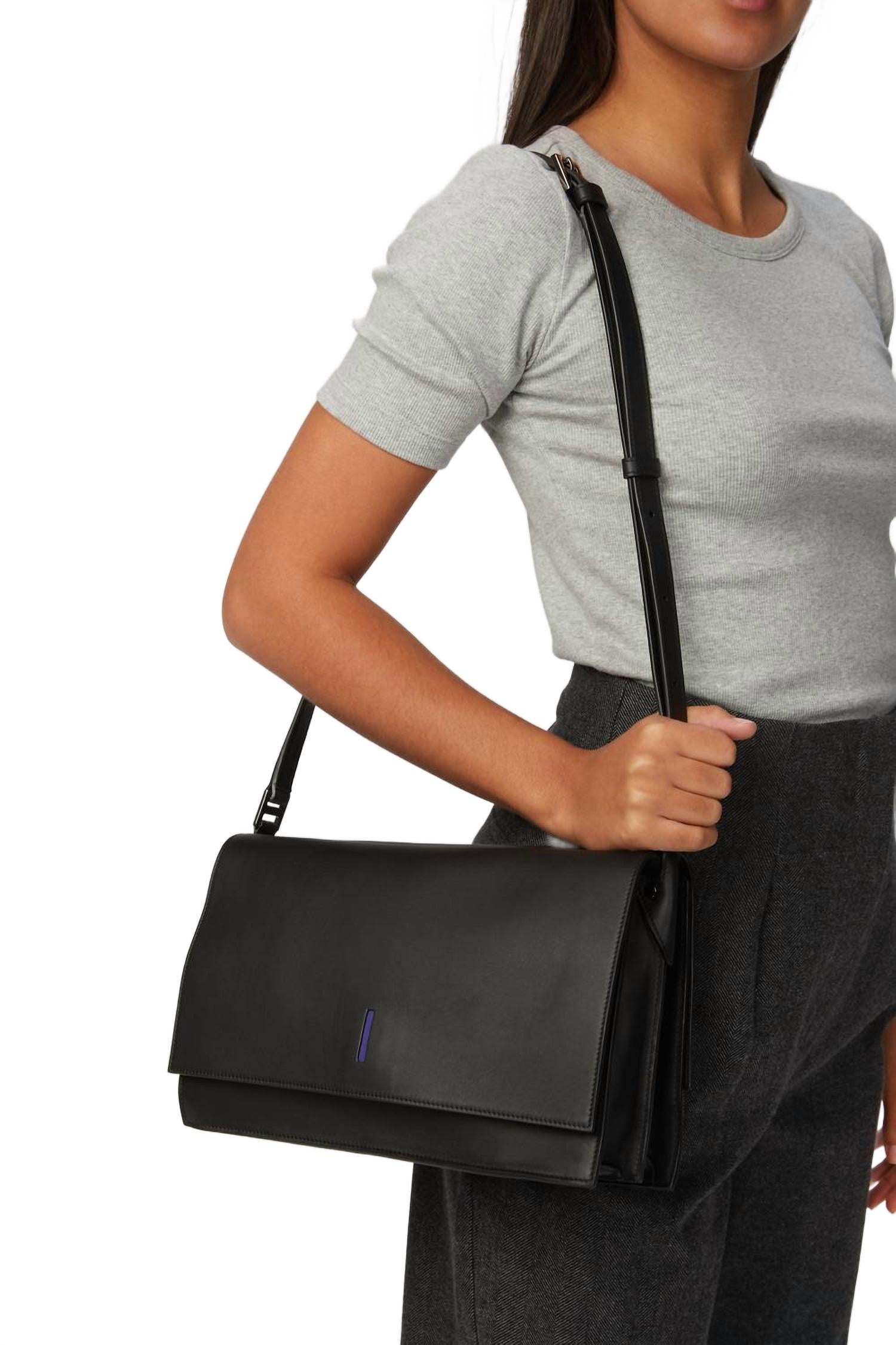 Двусторонняя сумка с регулируемым плечевым ремнем. Два отделения с клапанами на магнитных застежках. Внутренний карман.