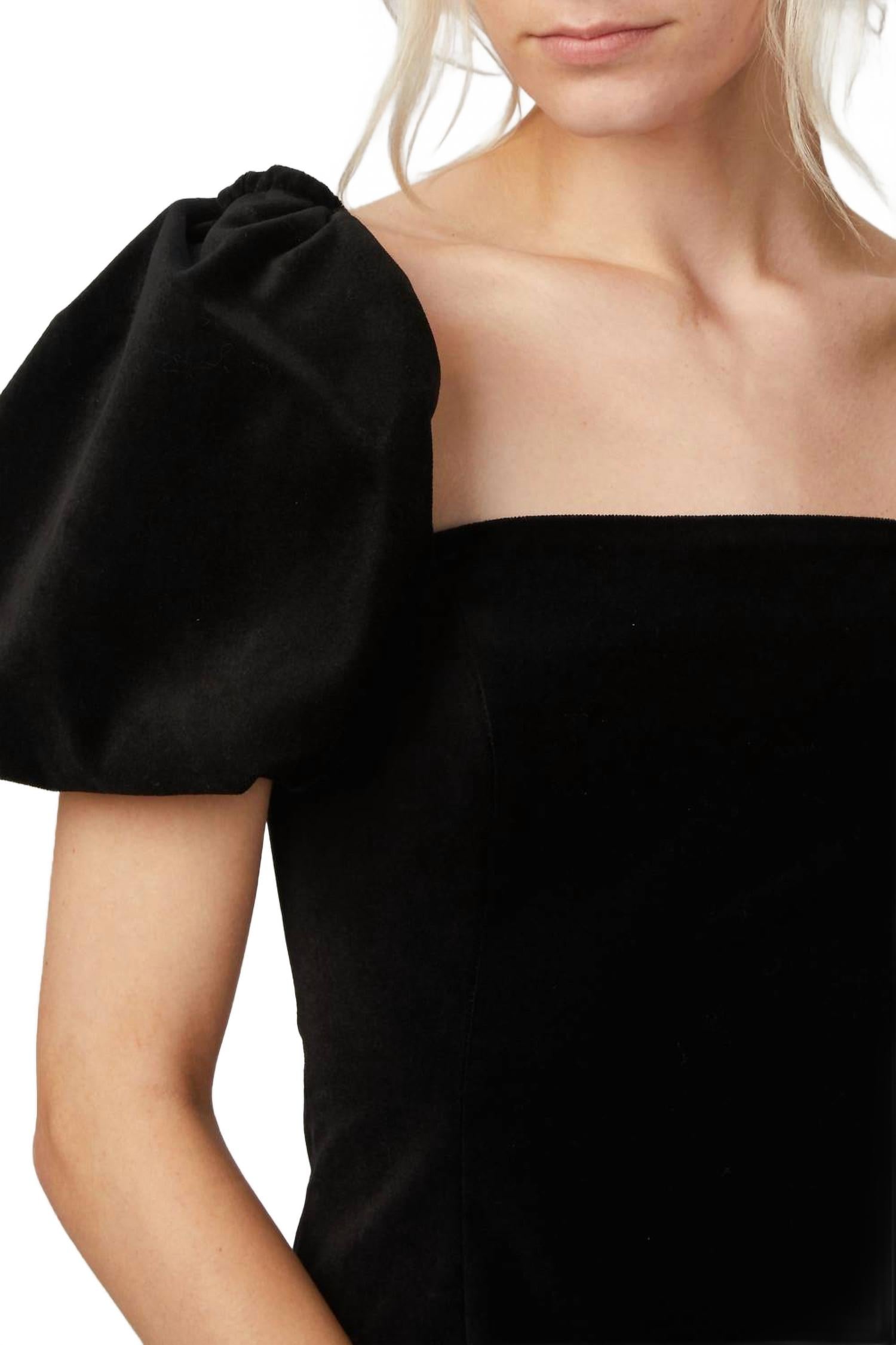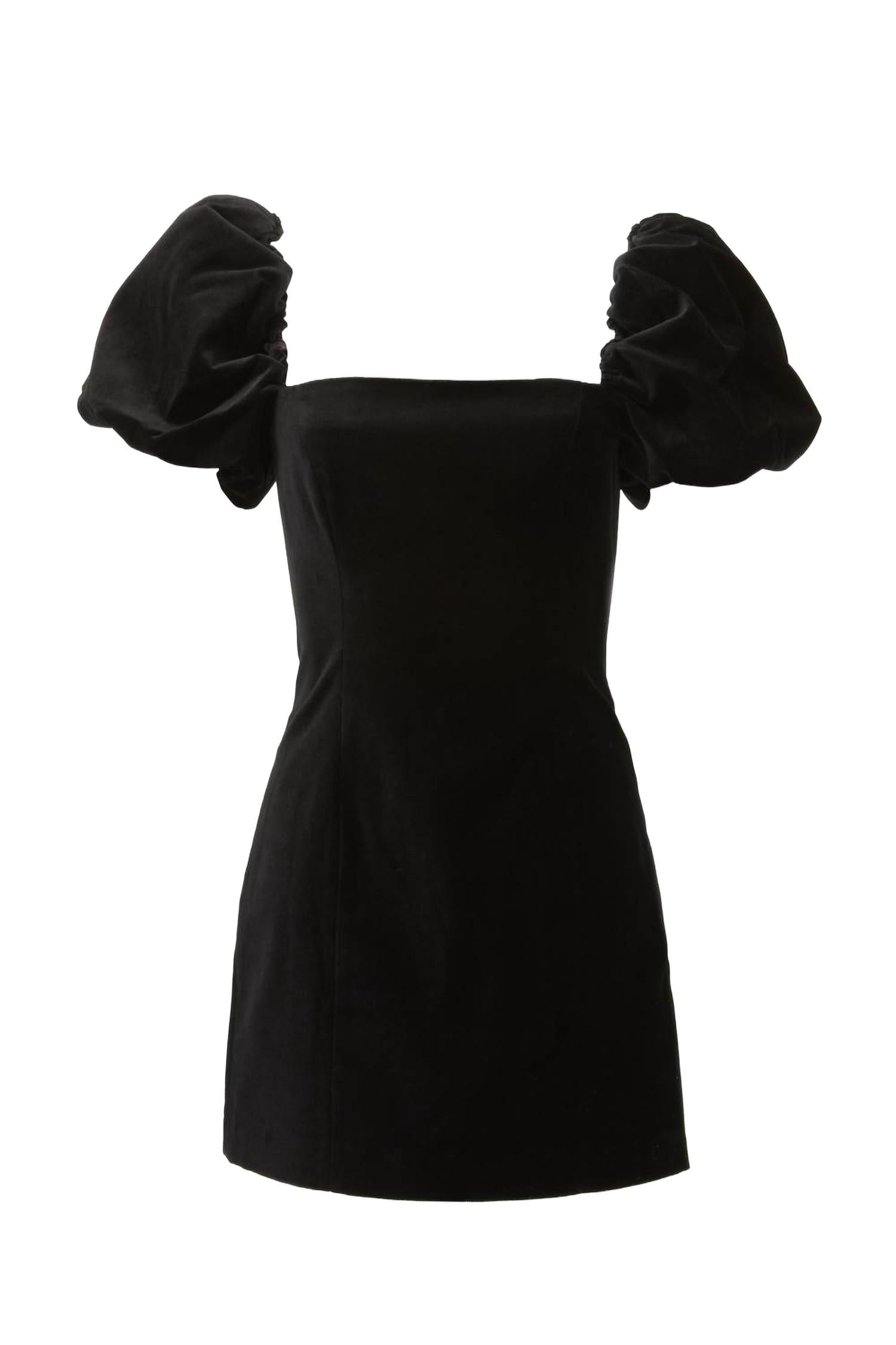 Мини-платье с рукавами-буфами и квадратным вырезом.