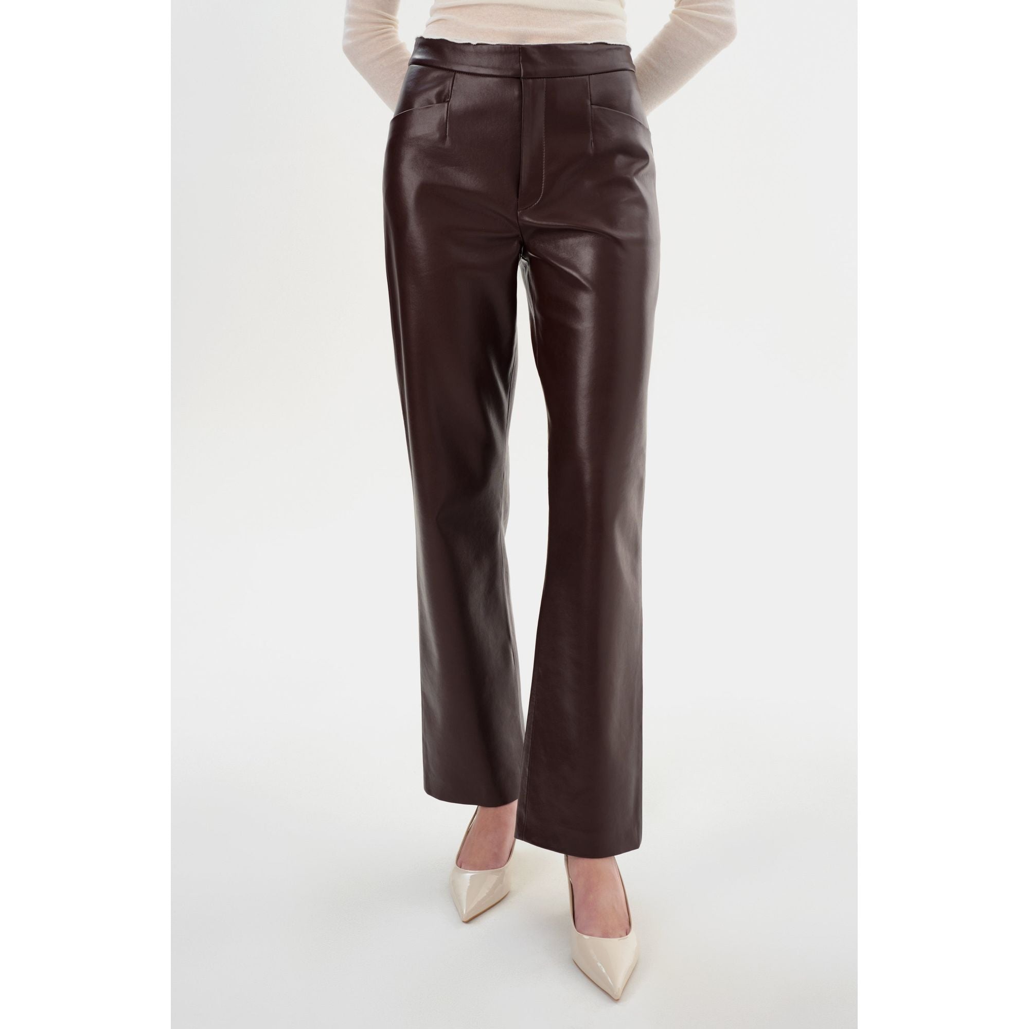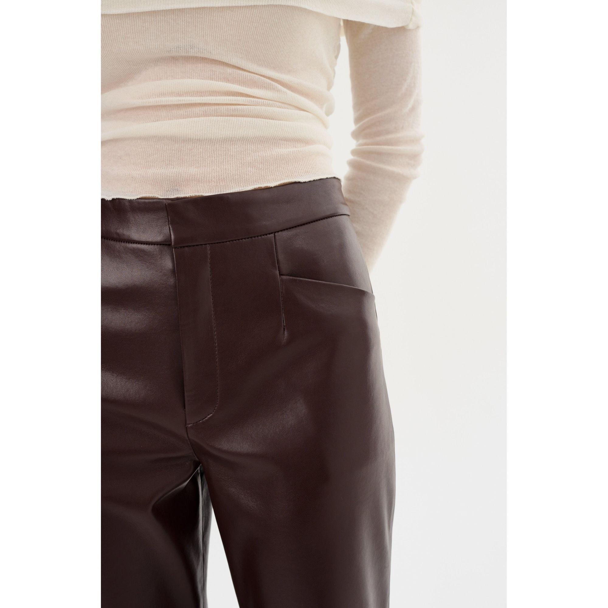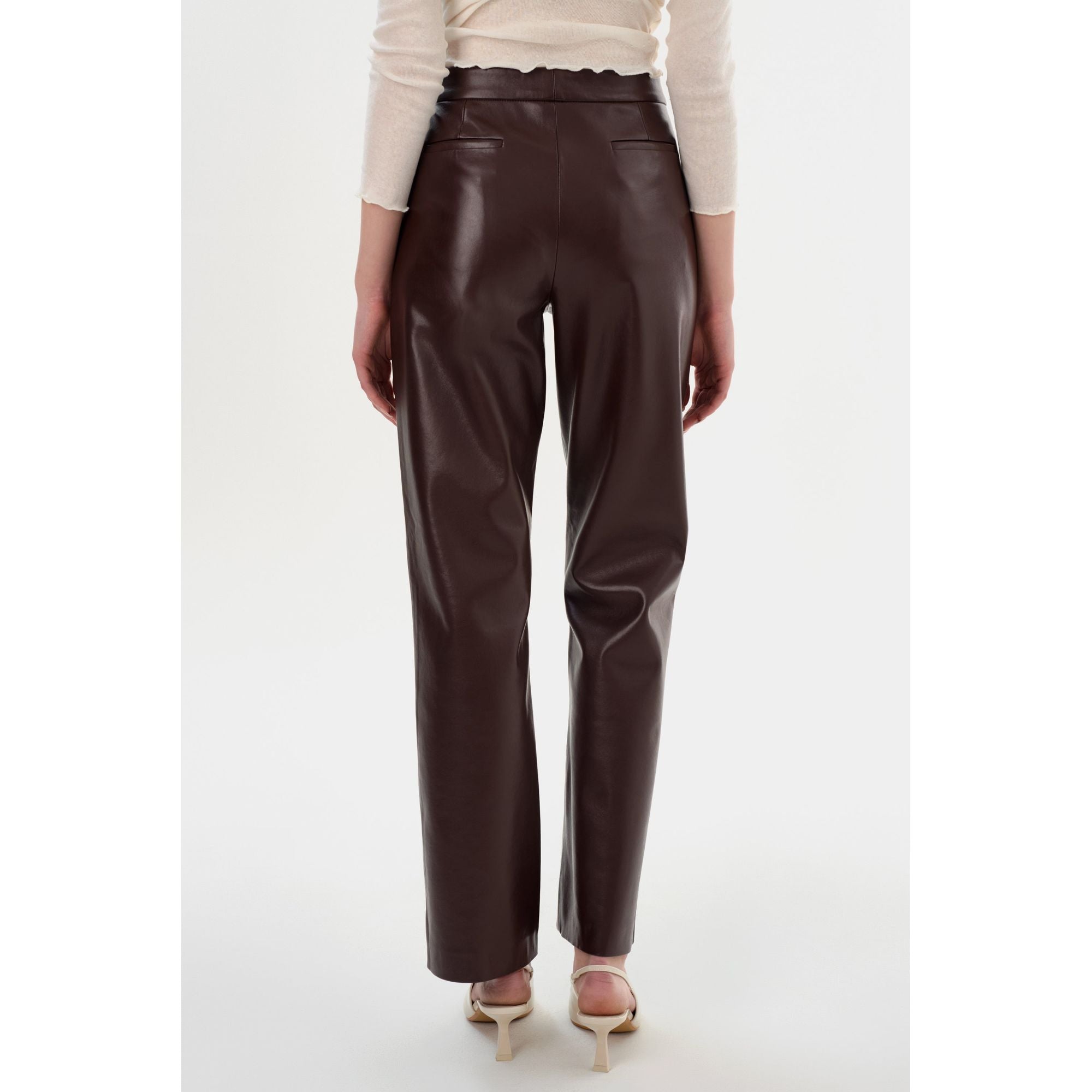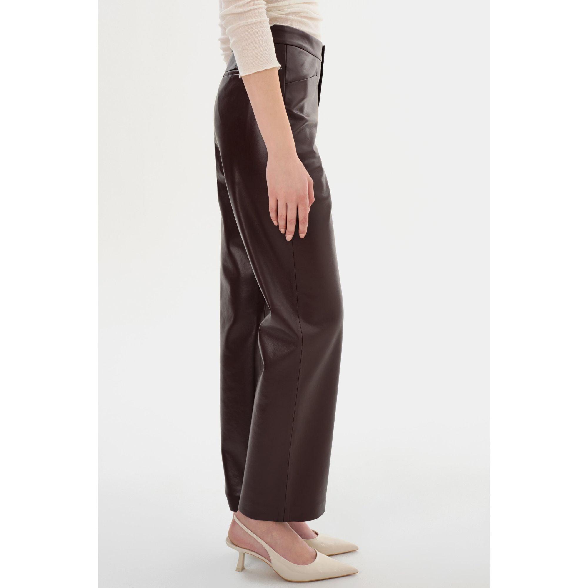 Брюки IMANI из переработанной кожи - изысканный выбор для зимы. Разработанные с учетом экологических требований, эти брюки добавят непринужденной роскоши стильной девчонки в любой образ для холодной погоды.