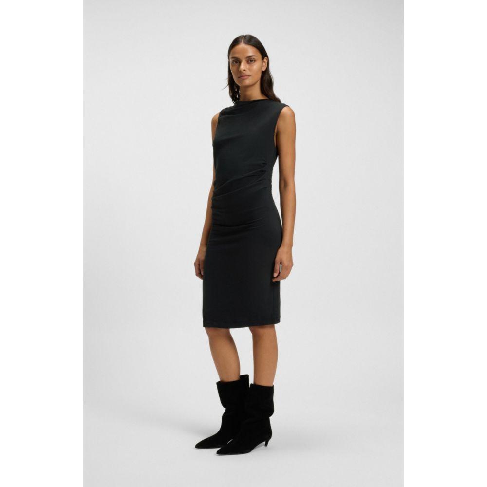 Платье с асимметричным вырезом BOSS, черный
