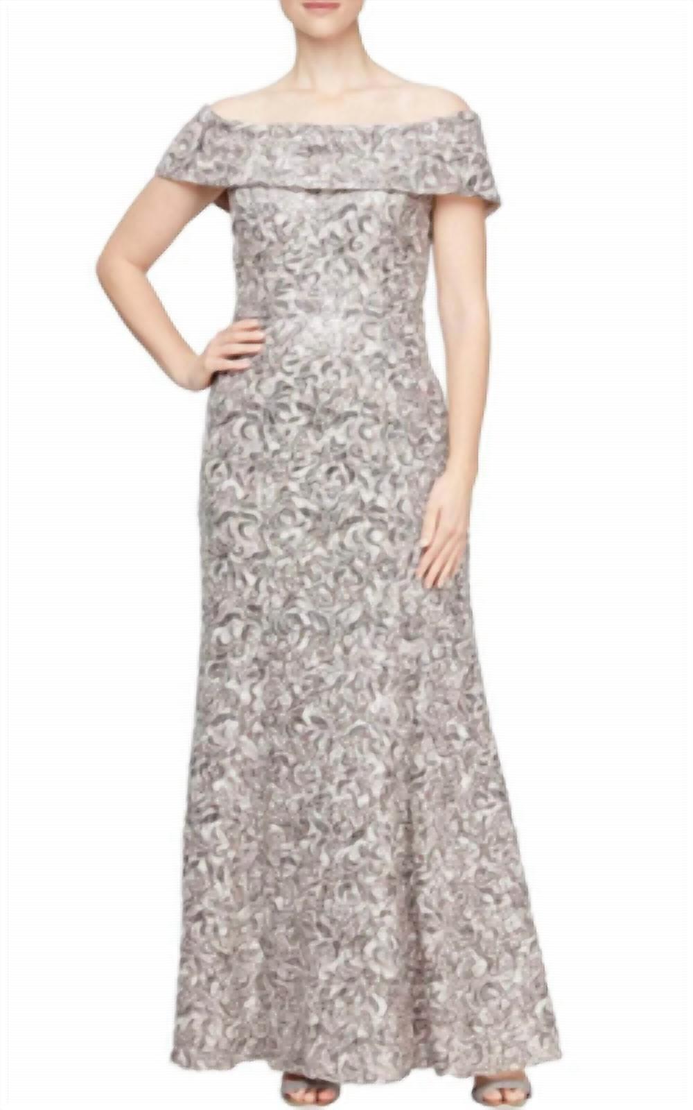 Макси-платье с открытыми плечами в цвете норка Alex Evenings, Mink