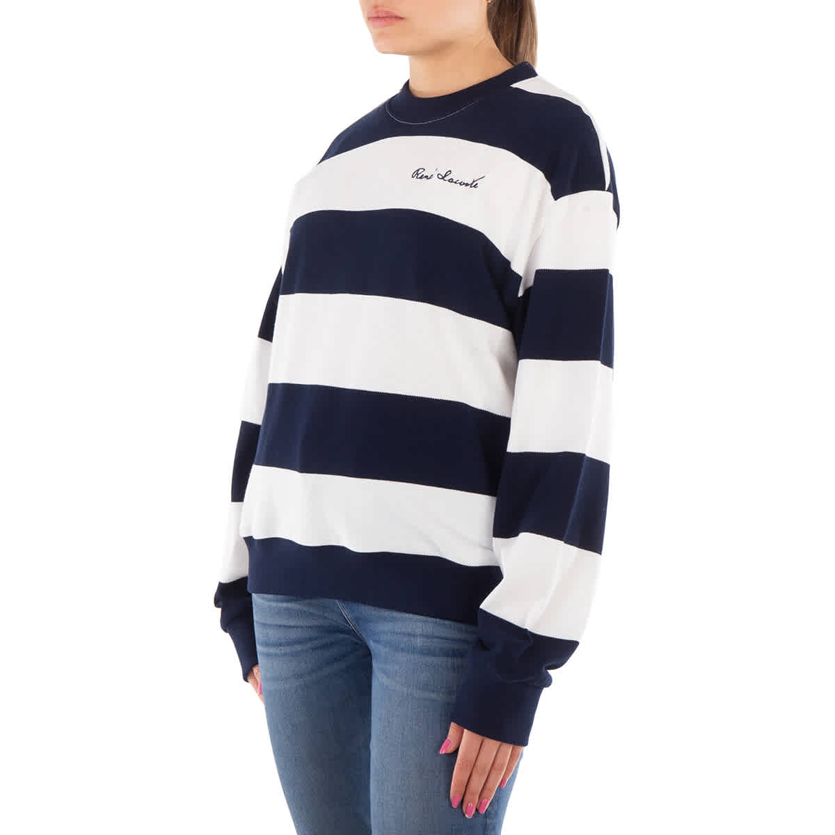 Женские топы Lacoste. Категория: Худи и свитшоты. Цвет: разноцветный. Эта рубашка с круглым вырезом, полосатым рисунком, сборкой на талии и принтом Lacoste. 100% хлопок.
