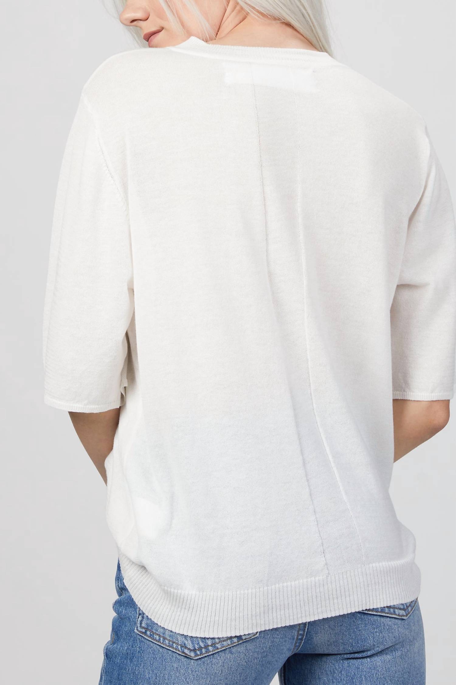 Носите этот свитер с V-образным вырезом с любимыми джинсами для создания идеального осеннего образа. Он имеет свободный крой, круглый вырез и рукава до локтя. Состав: 50% хлопок, 50% тенсел.