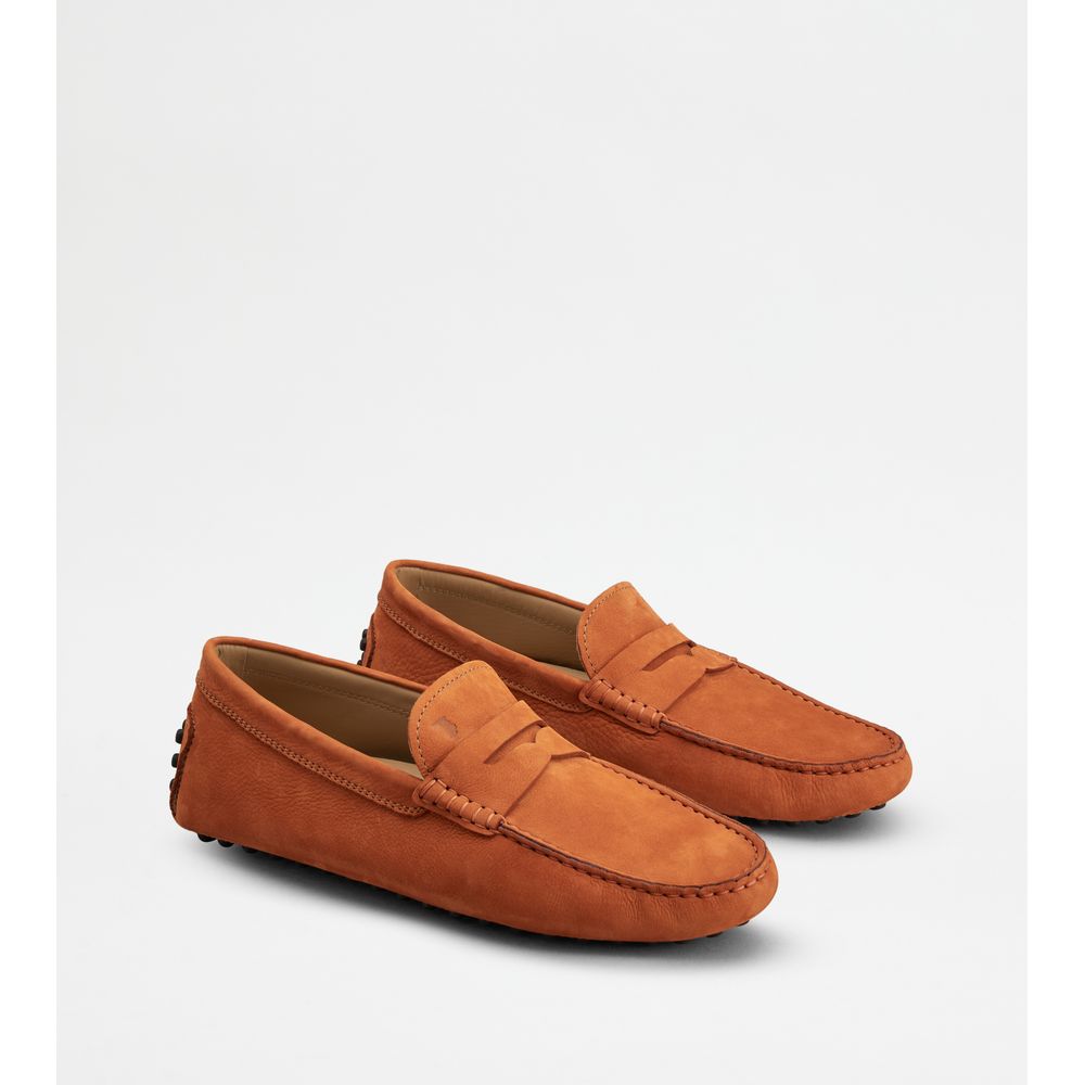 Кроссовки Tod's Gommino из шелковистого нубука с открытой ручной строчкой, полоской в ​​виде пенни, штампованной монограммой и культовой резиновой подошвой с рисунком в виде камешков.