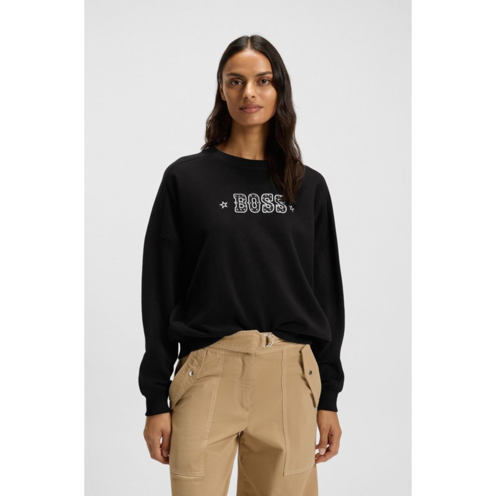 Хлопковый махровый свитшот с логотипом BOSS, черный