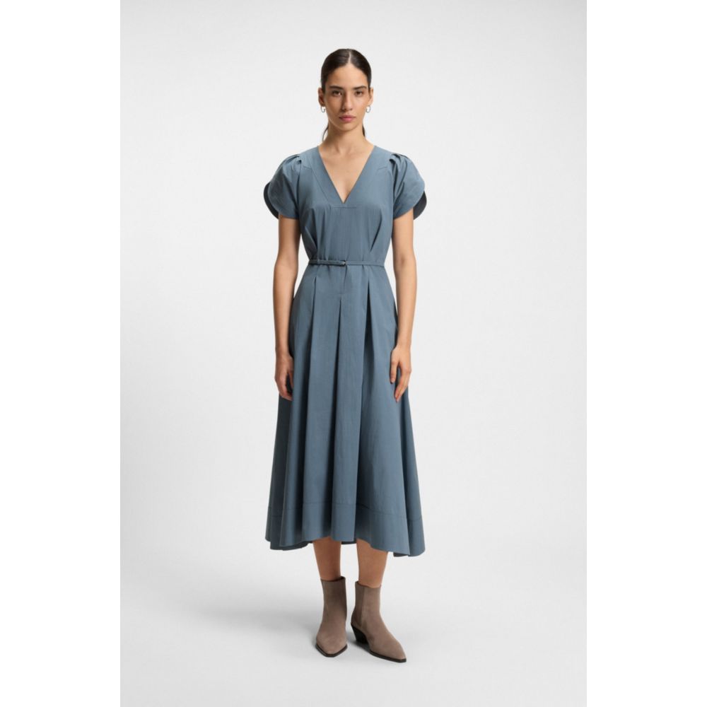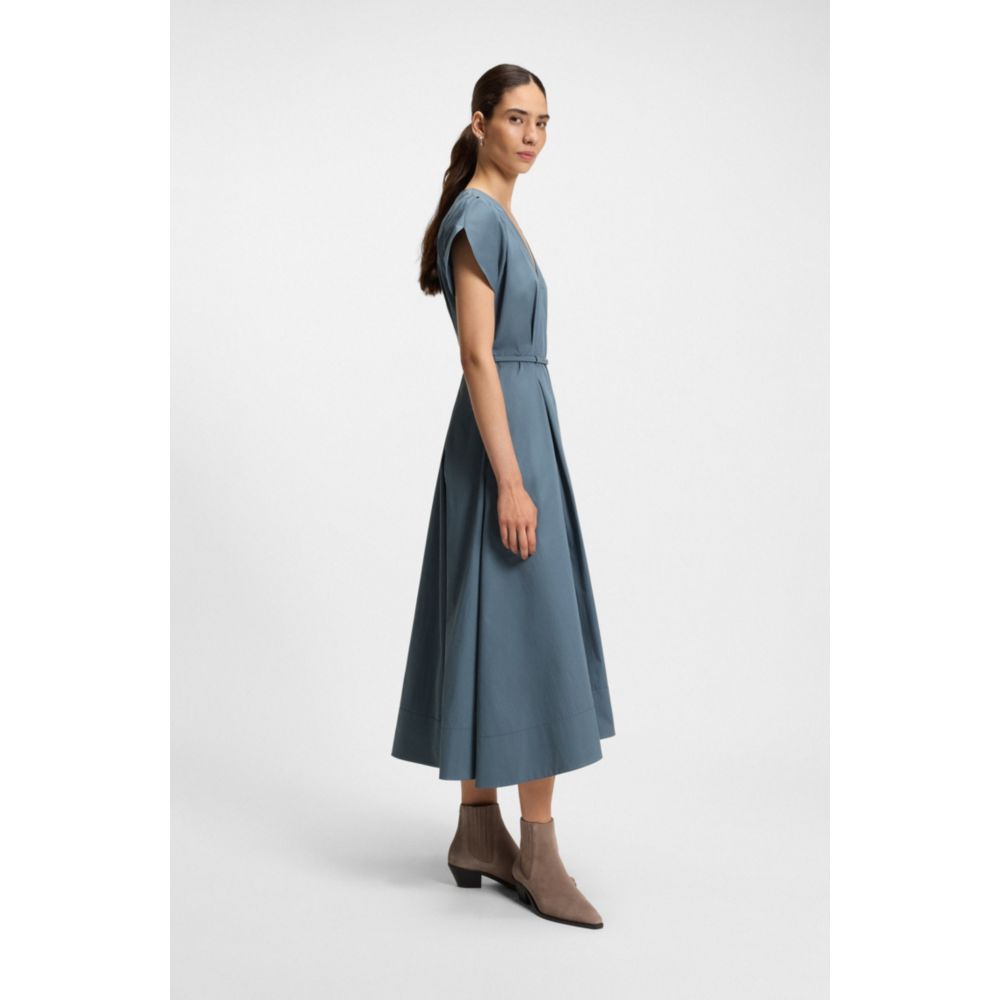 Это женское платье BOSS с V-образным вырезом и тонким поясом, подчеркивающим талию, станет отличным вариантом для повседневной носки. Изготовлено из дышащего поплина.