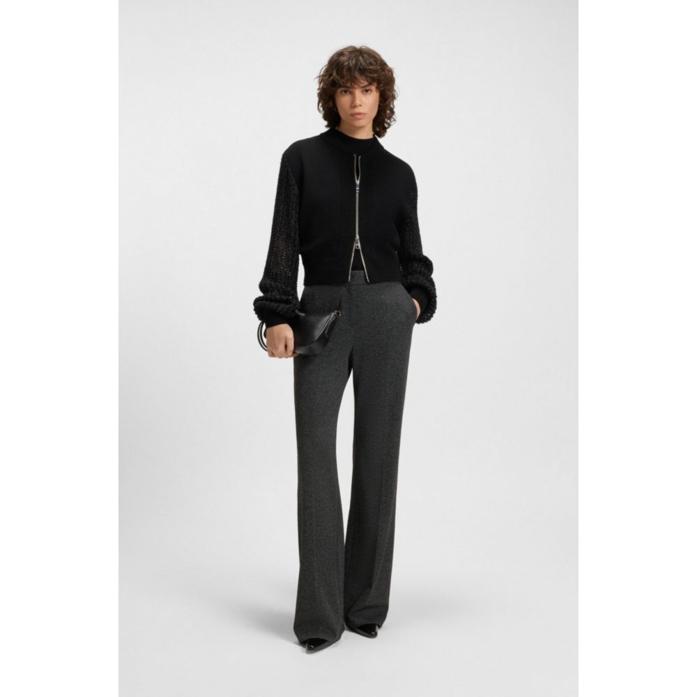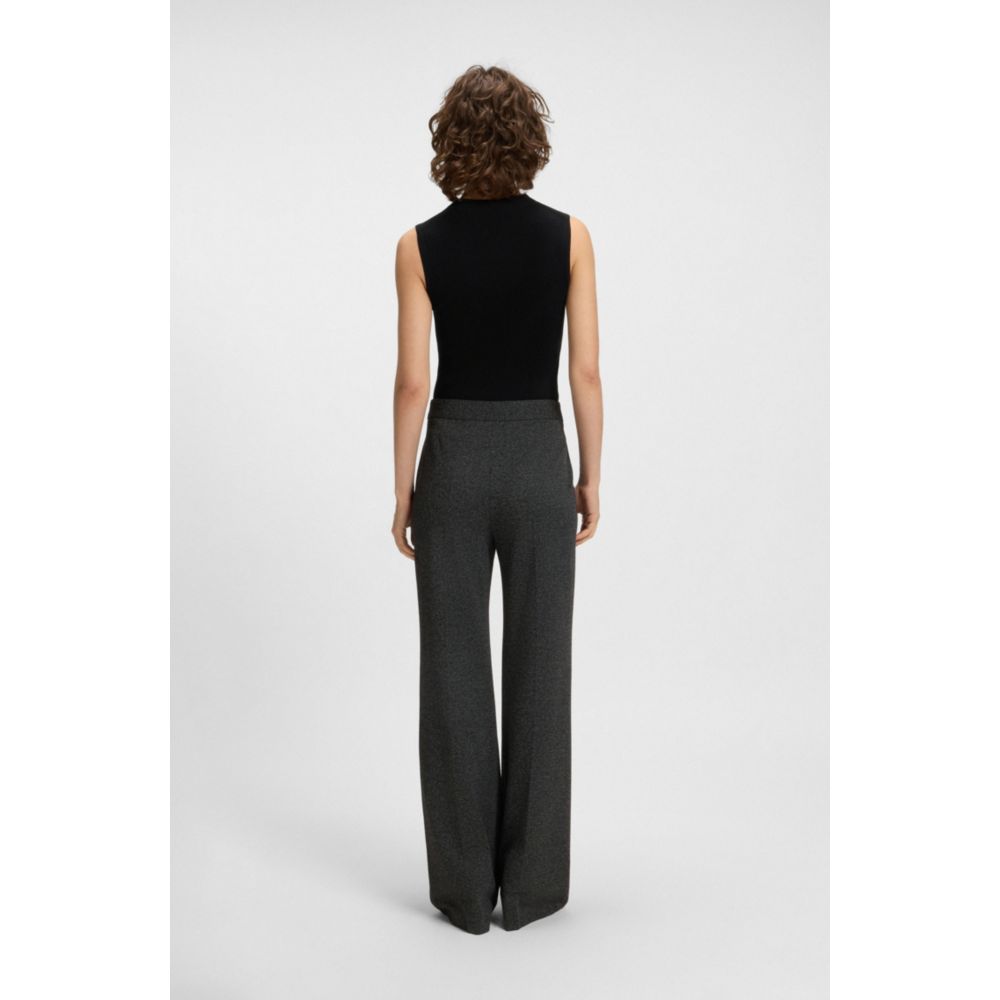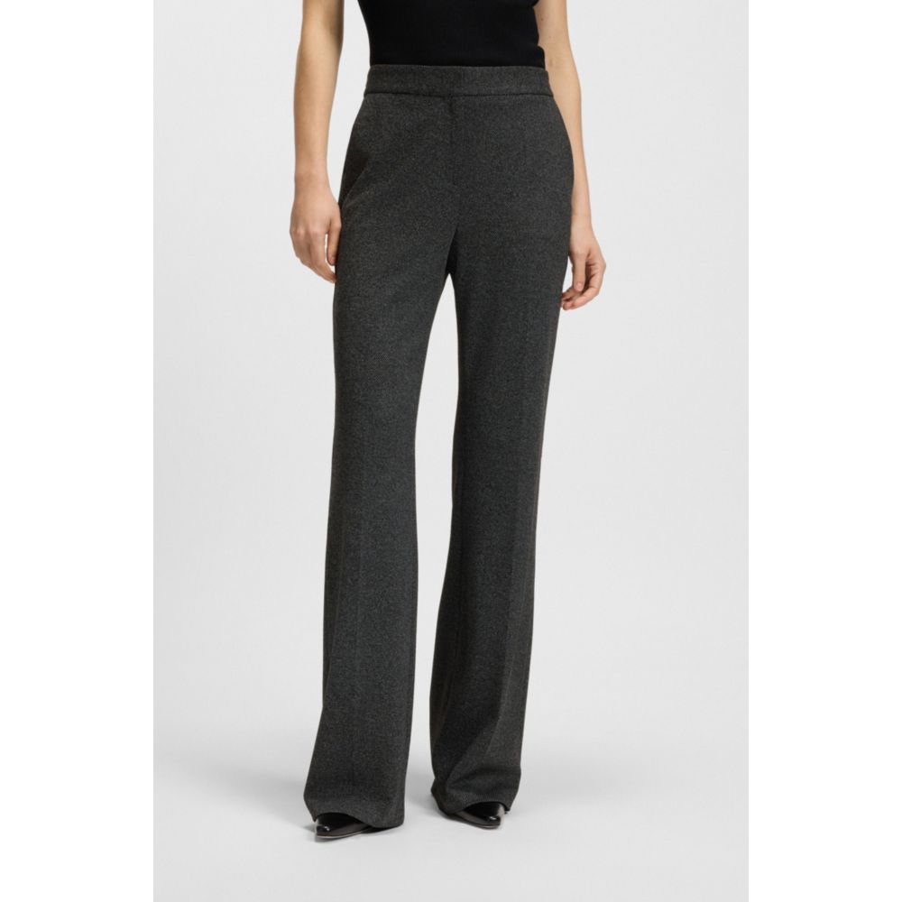 Эти удлиненные женские брюки BOSS из эластичного твила обеспечивают комфорт и станут универсальной основой делового образа. Облегающий крой с расклешенными брючинами.