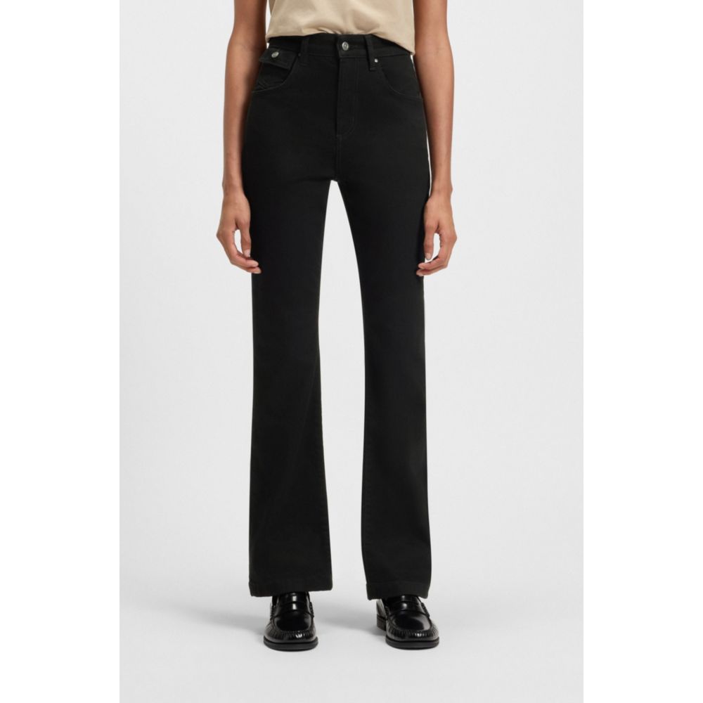 Эти джинсы BOSS Womenswear с привлекательным кроем bootcut - современный незаменимый предмет гардероба. Черный эластичный деним с чистой тканью. Карман для монет.