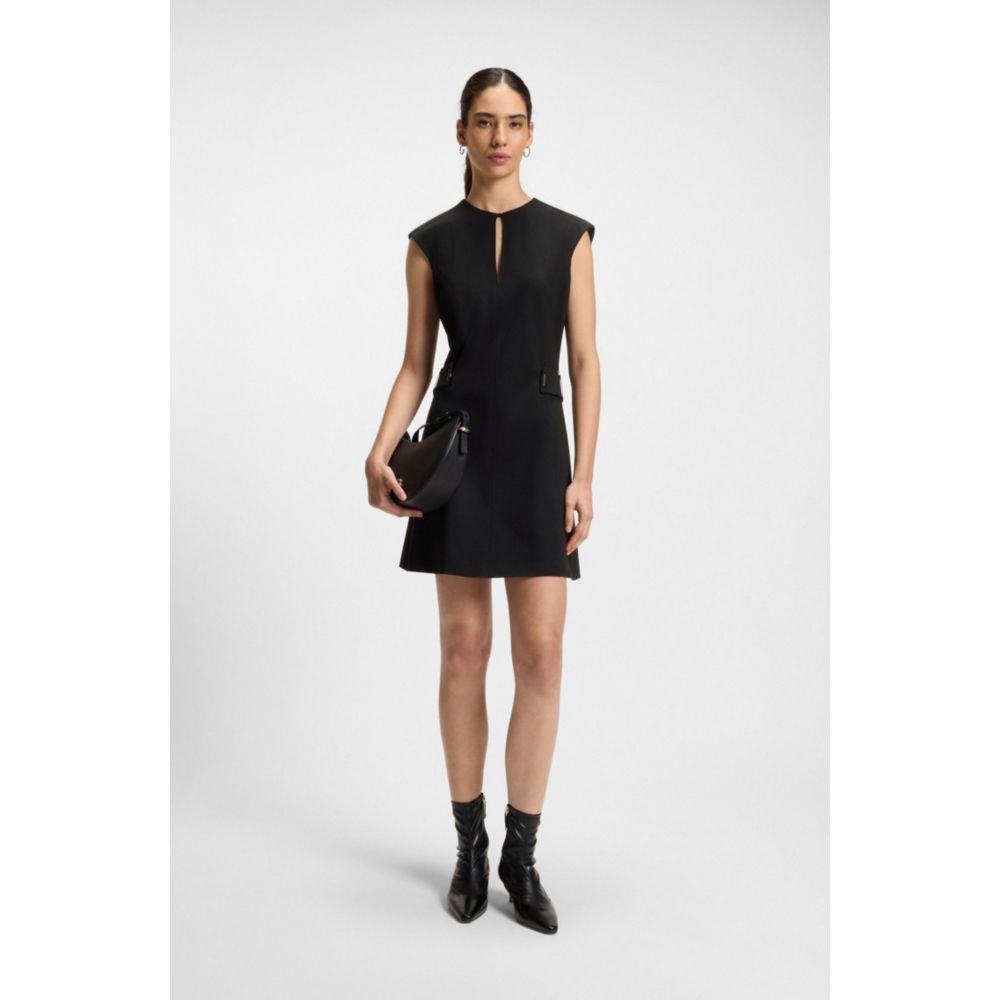 Создавайте непринужденные деловые образы с помощью этого платья свободного силуэта от BOSS Womenswear. Эластичная ткань с вырезом-капелькой и современным поясом.