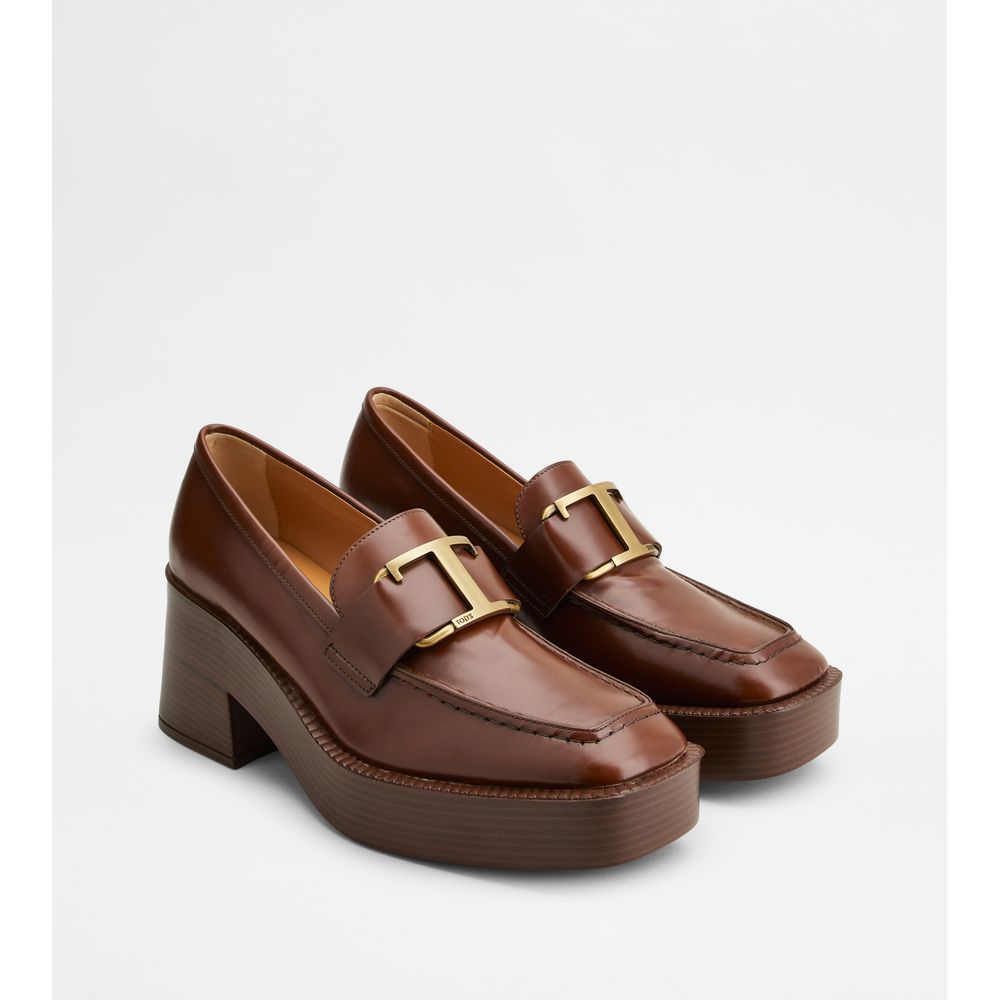 Лоферы из элегантной кожи с фирменным металлическим ремешком в виде буквы T Timeless и аксессуаром, подошвой на платформе и каблуком из резины, имитирующей кожу.