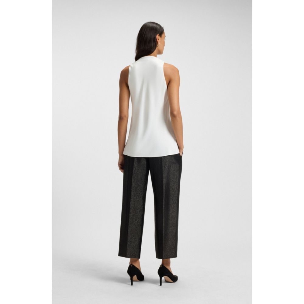 Этот женский топ BOSS с безрукавкой и драпированным вырезом легко сочетается с рабочей одеждой или вечерними нарядами. Мягкий атлас. Классический крой.