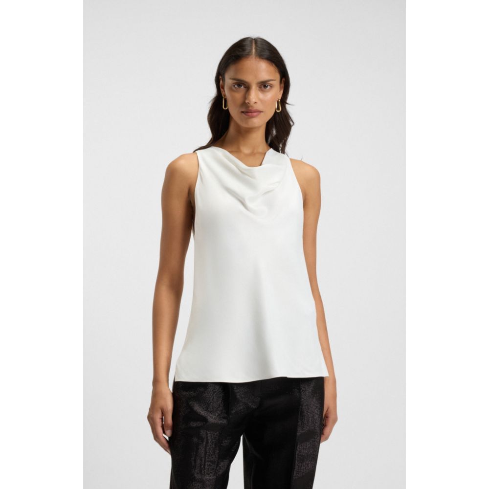 Топ без рукавов из сатина с драпированным вырезом BOSS, белый