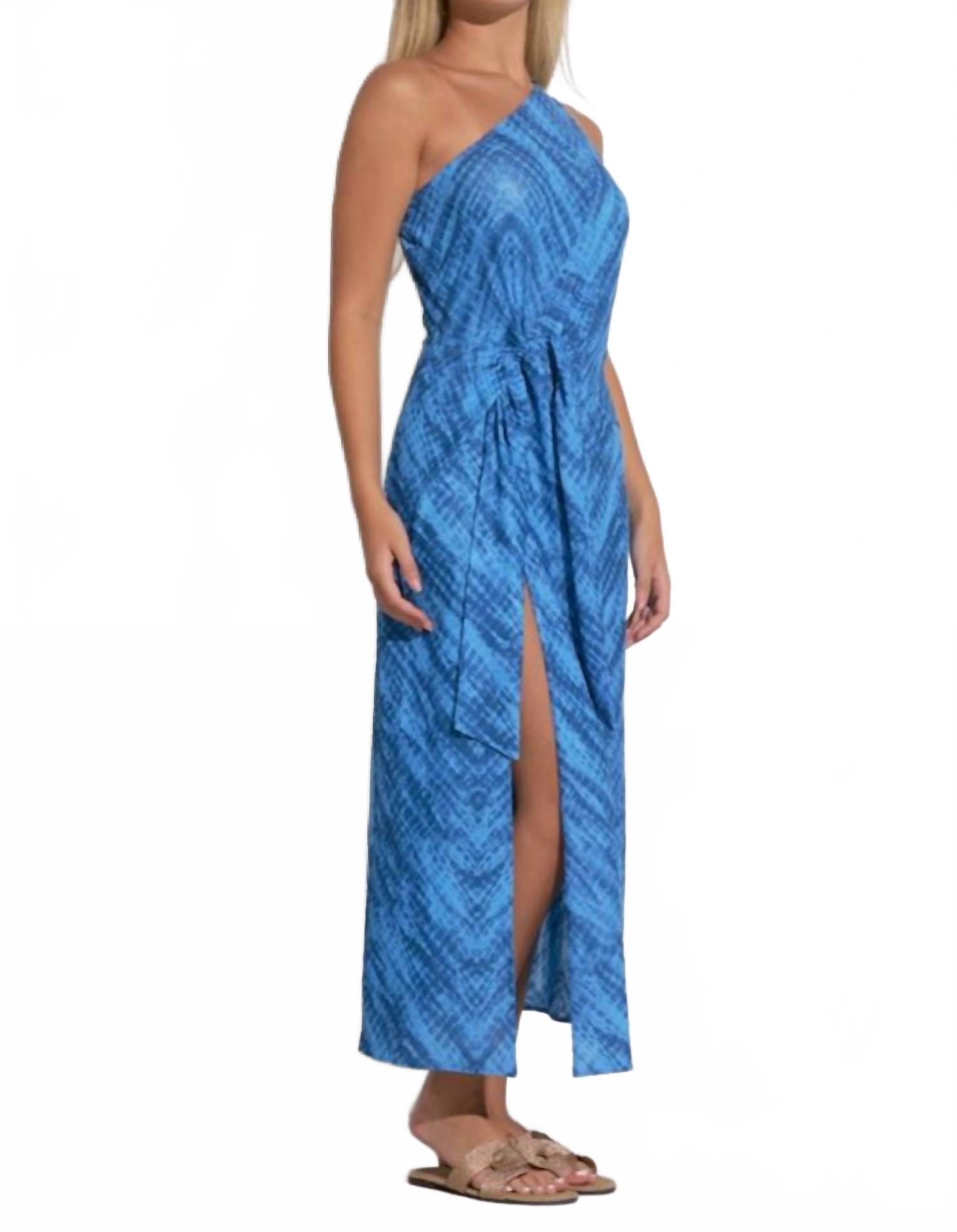 Гавана Принт платье с одним плечом в синем цвете ELAN