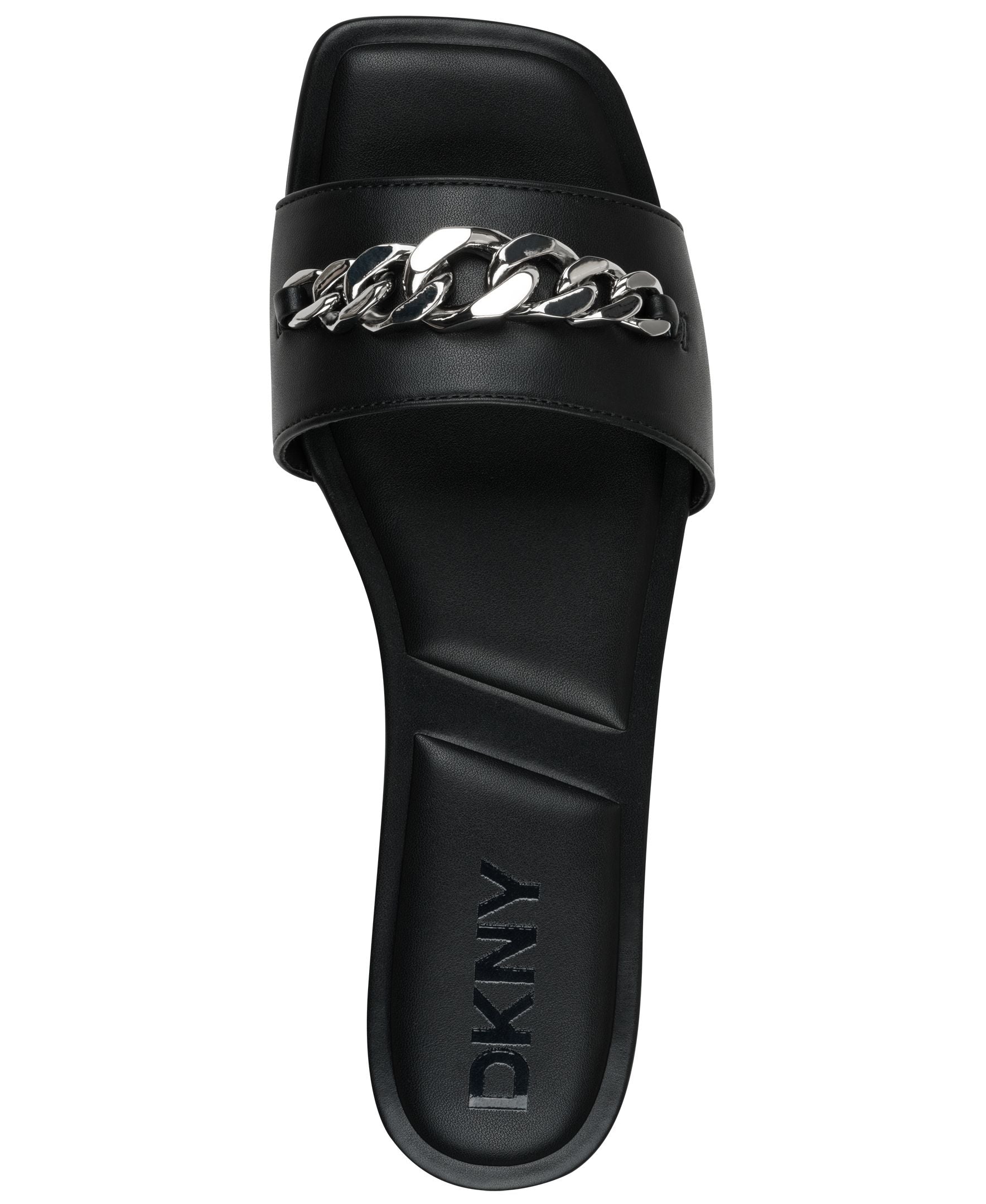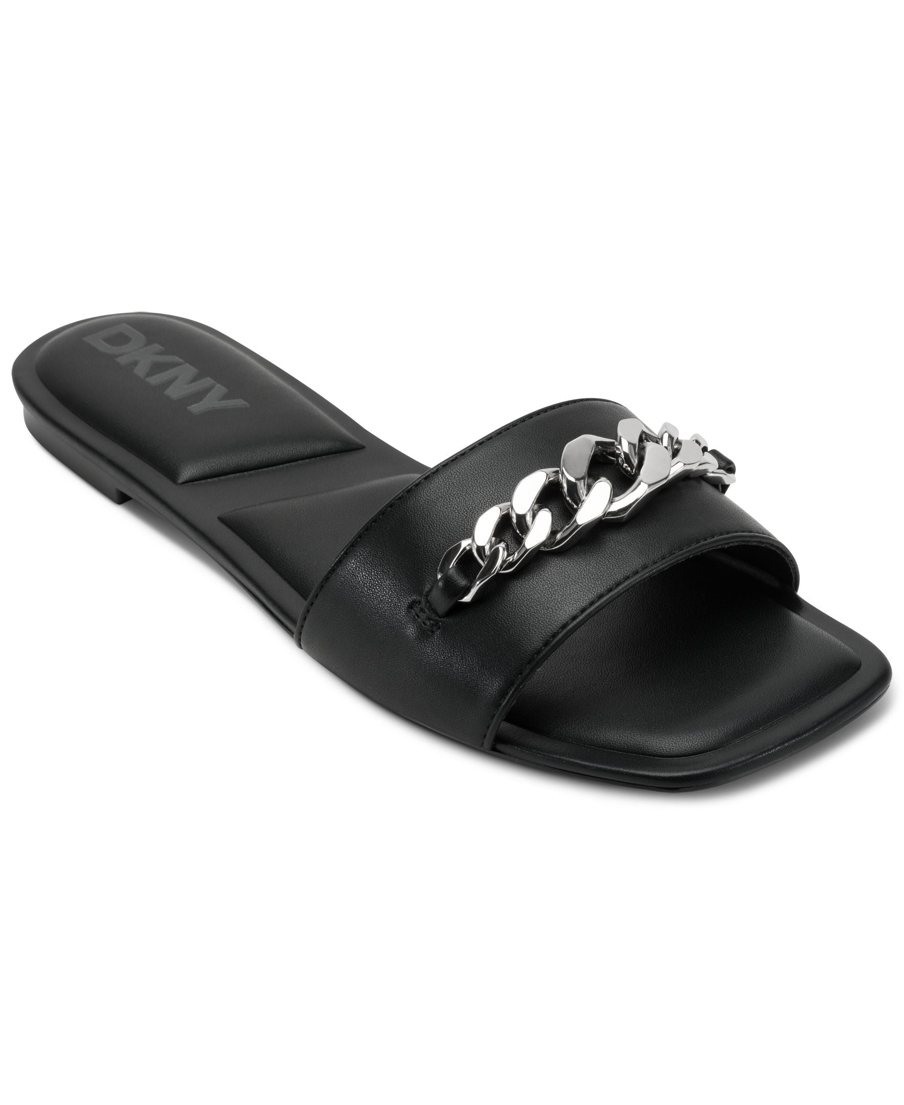 Полированная фурнитура в виде цепочек украшает верх сандалий с квадратным носком от DKNY на мягкой стельке, обеспечивающей длительный комфорт.