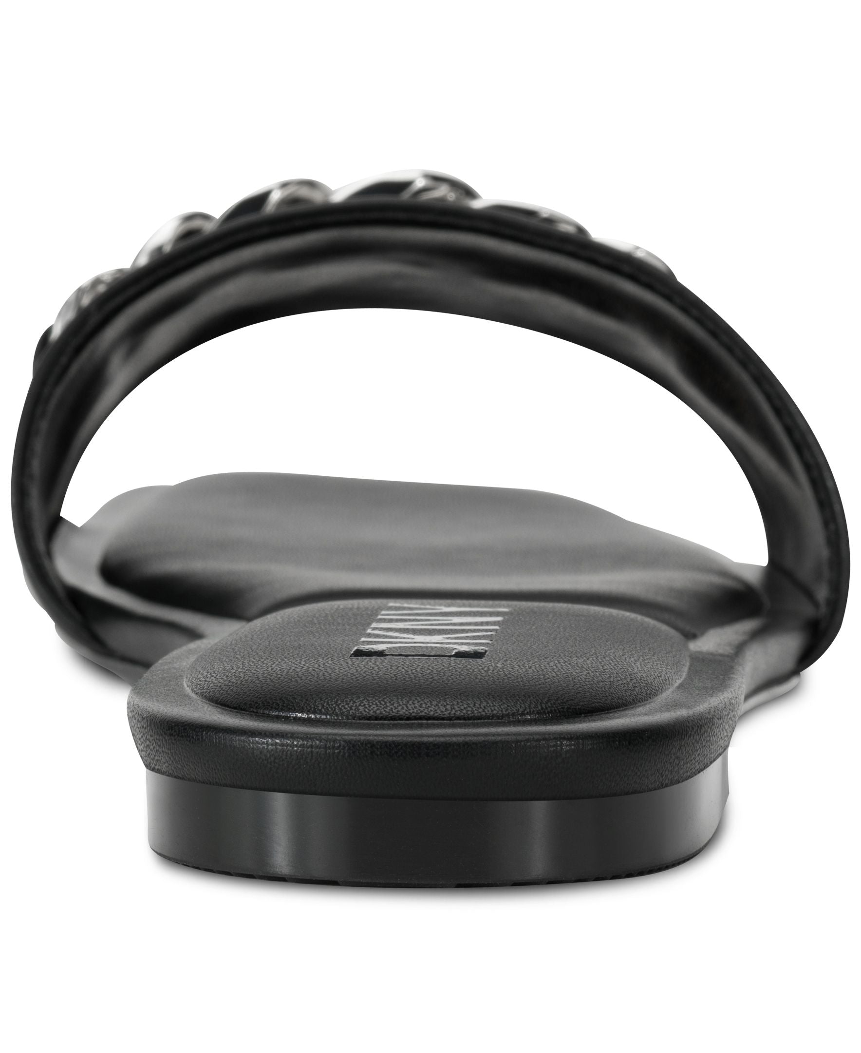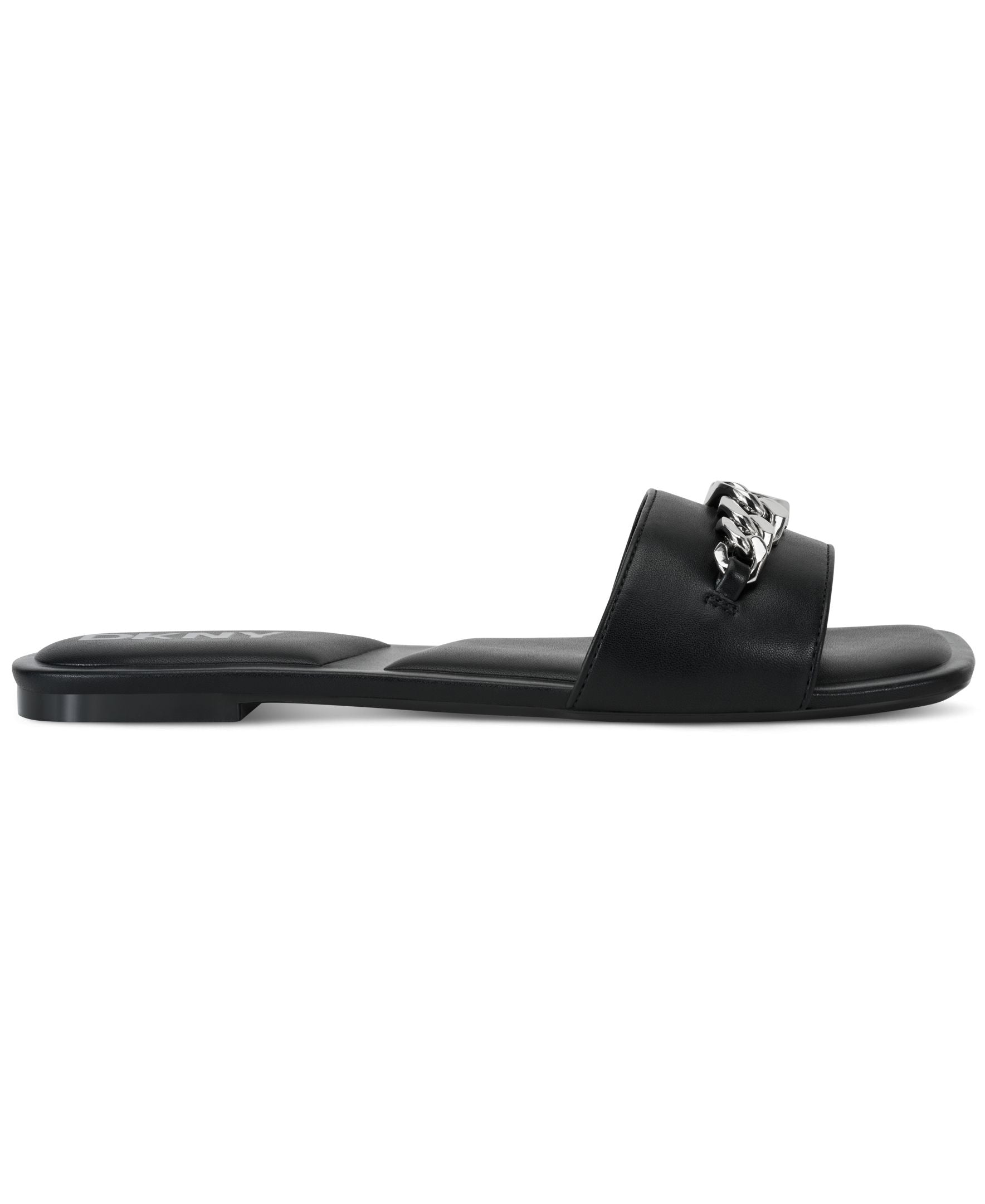 Полированная фурнитура в виде цепочек украшает верх сандалий с квадратным носком от DKNY на мягкой стельке, обеспечивающей длительный комфорт.
